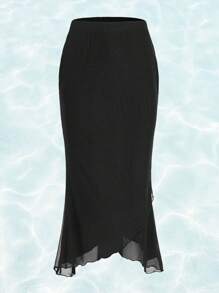 تنورة بحافة حورية البحر موحدة اللون مقلم نمط نبات الخس