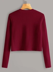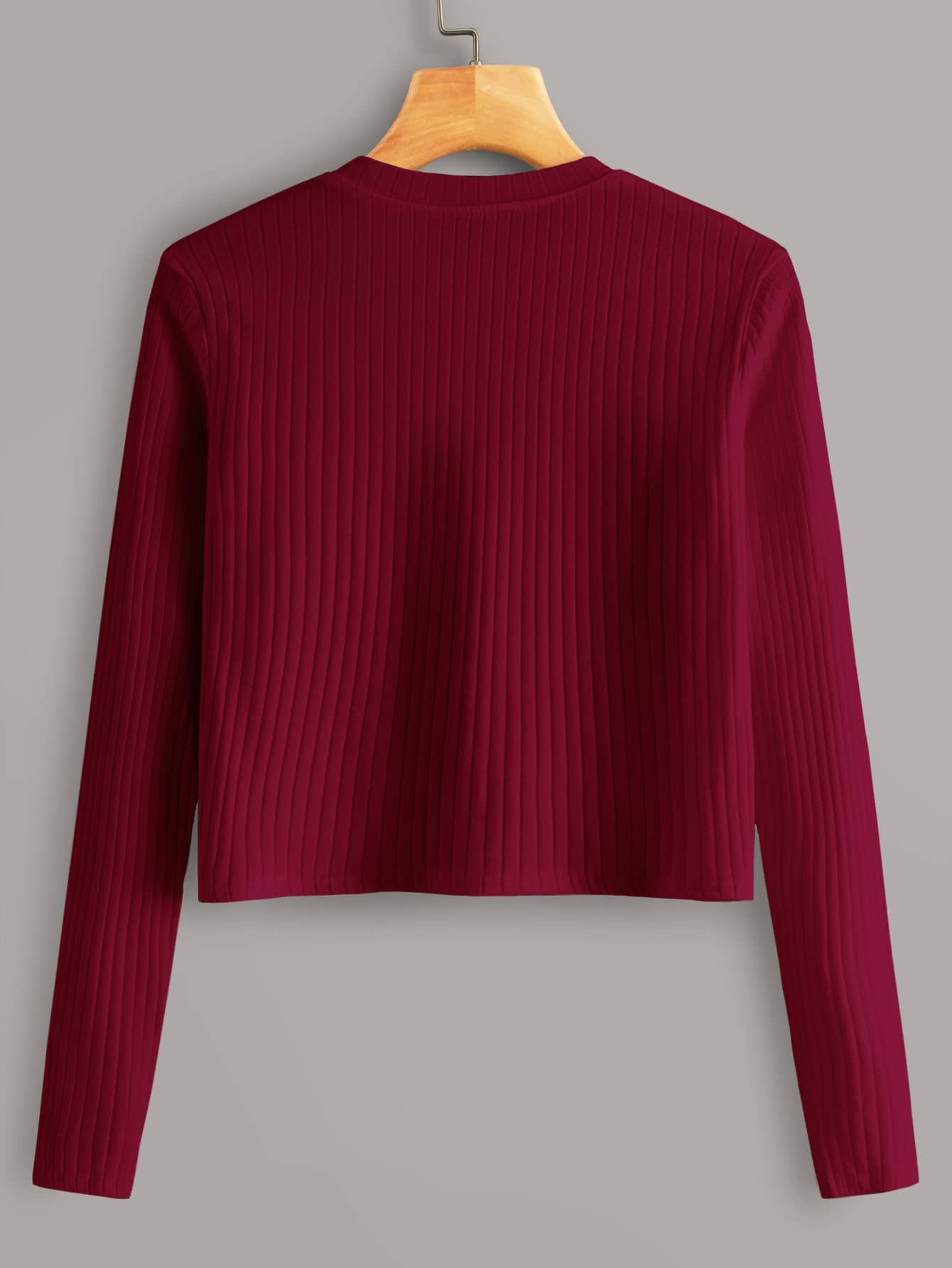 تي شيرت مضلع نمط المحاصيل وباكمام طويل وبلون موحد