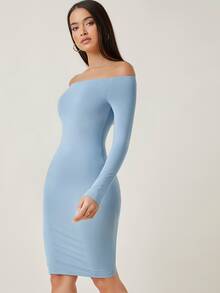 فستان ضيق مكشوف الاكتاف وبلون موحد