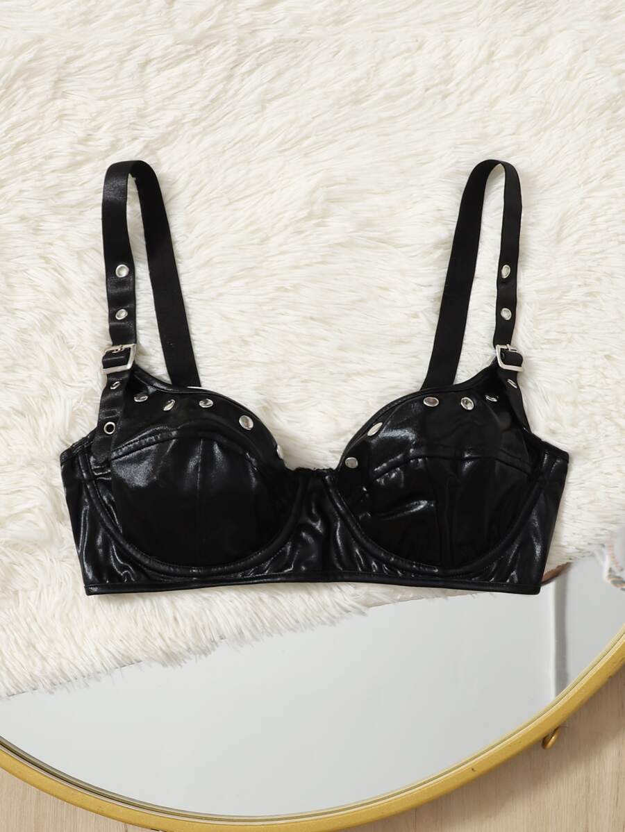 حمالة صدر موحدة اللون جلد صناعي مرصعة
