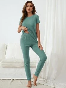 طقم استراحة محبوك مضلع بلون موحد