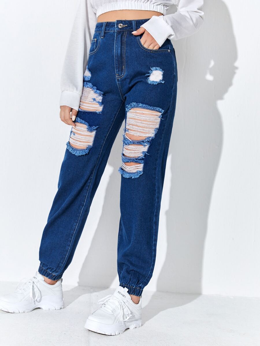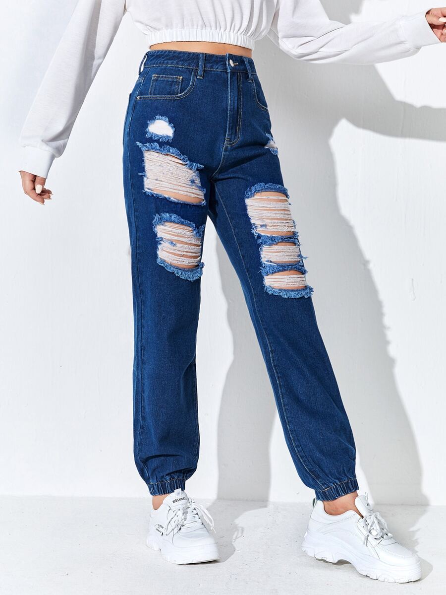 جينز نسائي الجيب ممزق الصاف