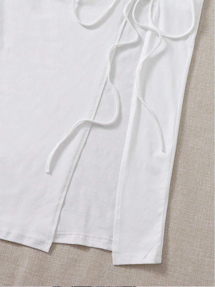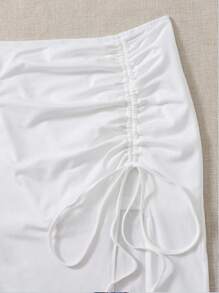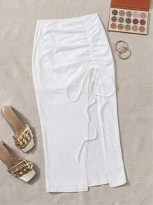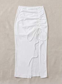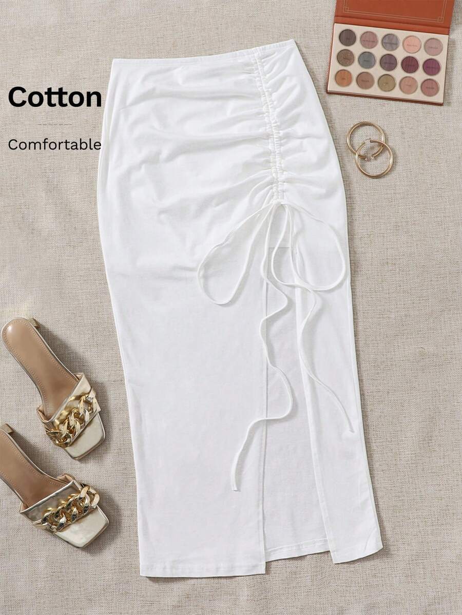 تنورة صيفية للنساء ذات شق على الفخذ, بحبال خصر قابلة للسحب وطي