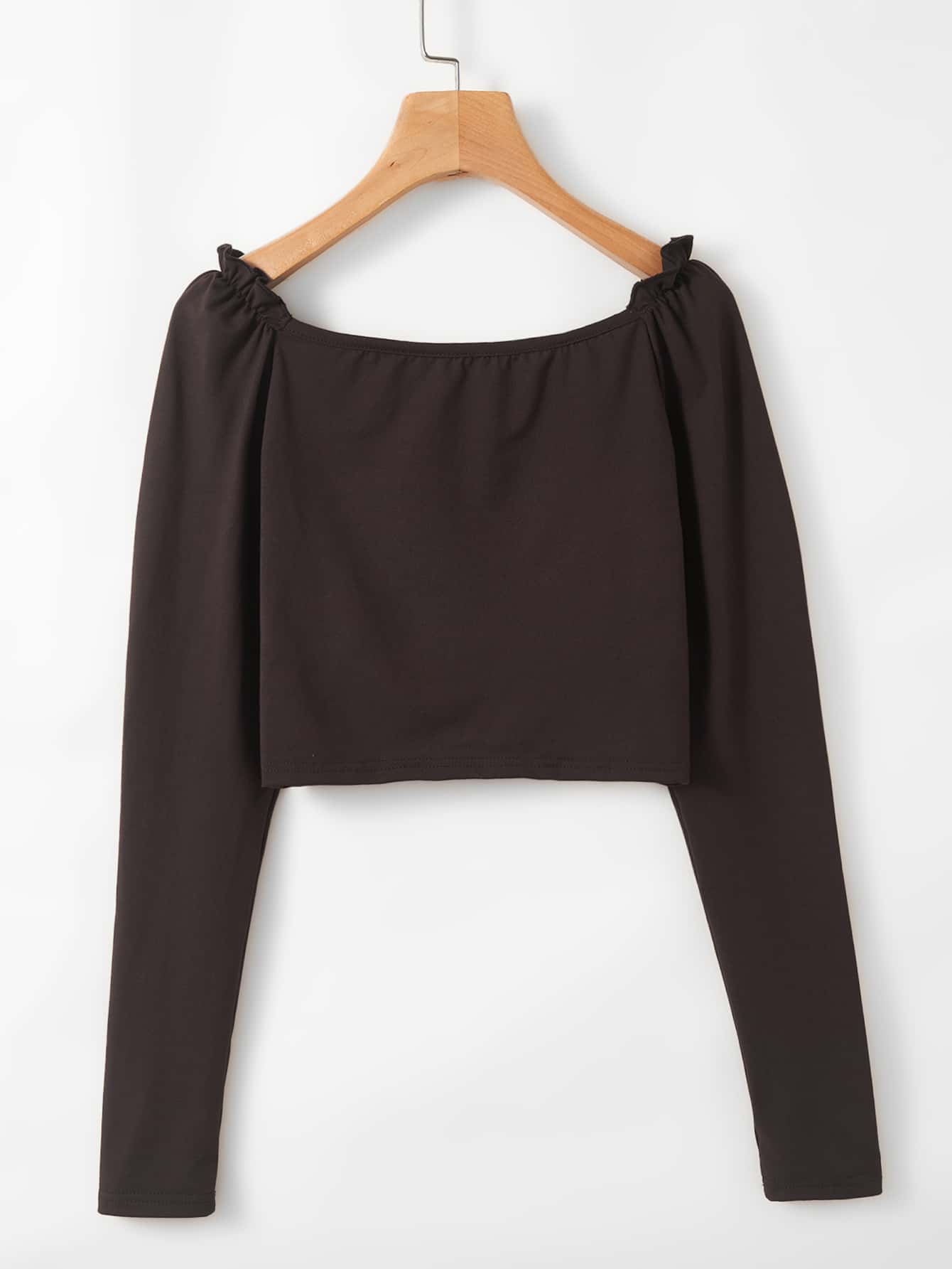 تي شيرت موحدة اللون ثنية مزخرفة