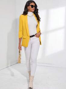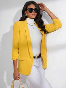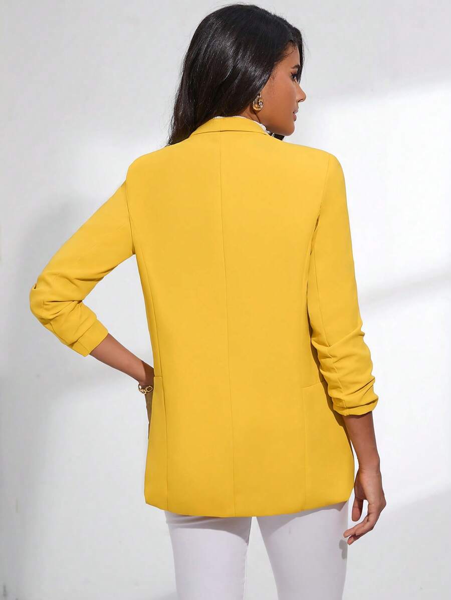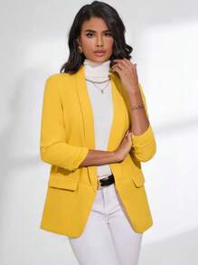 بلوز بالجيب الرفرف والياقة الشلال واللون الخالص