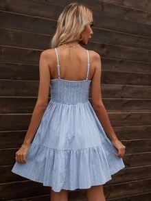 فستان كامي بحافة مكشكش مدرز خلفي بلون موحد