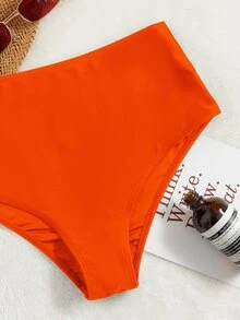 قاع بيكيني بخصر عالٍ وبسيط، ملابس سباحة صيفية للشاطئ