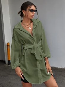 بلوزة نسائية بأزرار أمامية وكتف منسدل