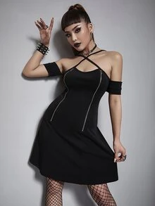 فستان بشريط A موحدة اللون سستة امامي متقاطع