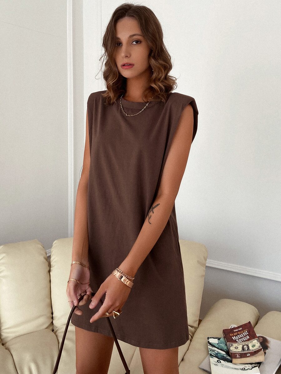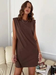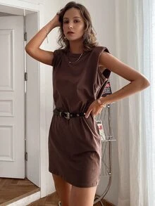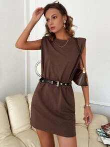 Sollinarry فستان مرقع الكتف بدون حزام