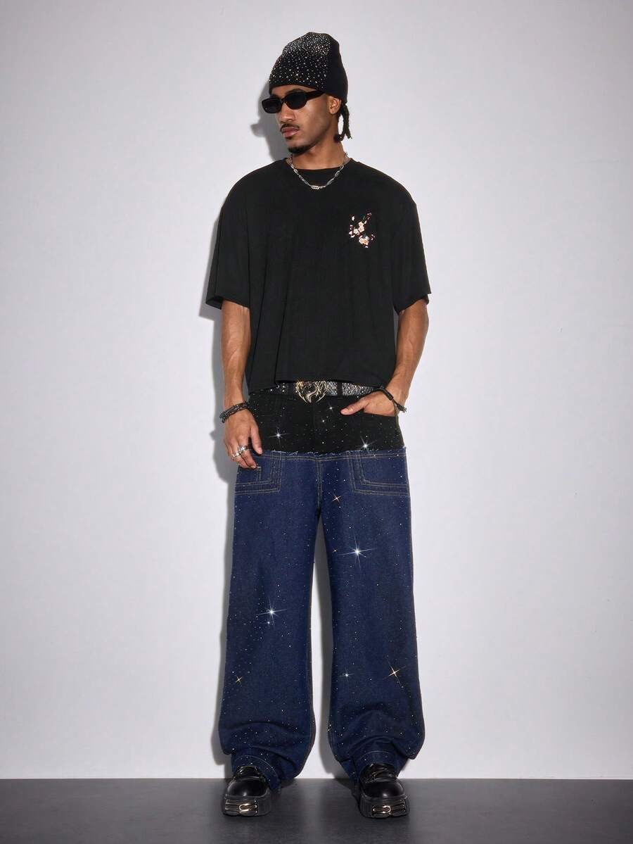 بنطلون جينز رجالي ملون بالكتل اللامعة عصري