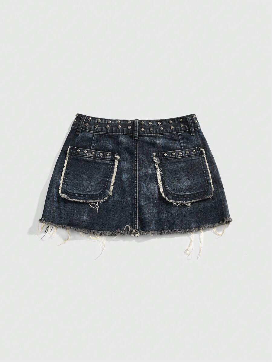 J-Fashion تنورة جينز ضيقة مصغرة مزينة بالخرز والخرز المتهالك من طراز فرعي Y2K للنساء
