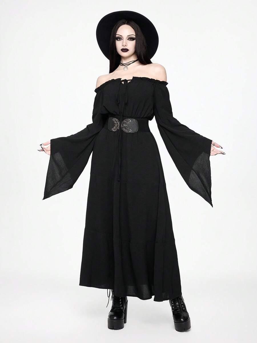 Goth فستان نسائي جوتيك بأكمام واسعة منسدلة وخصر ضيق