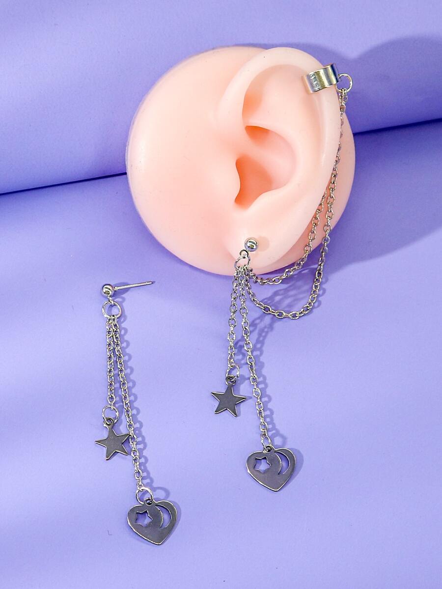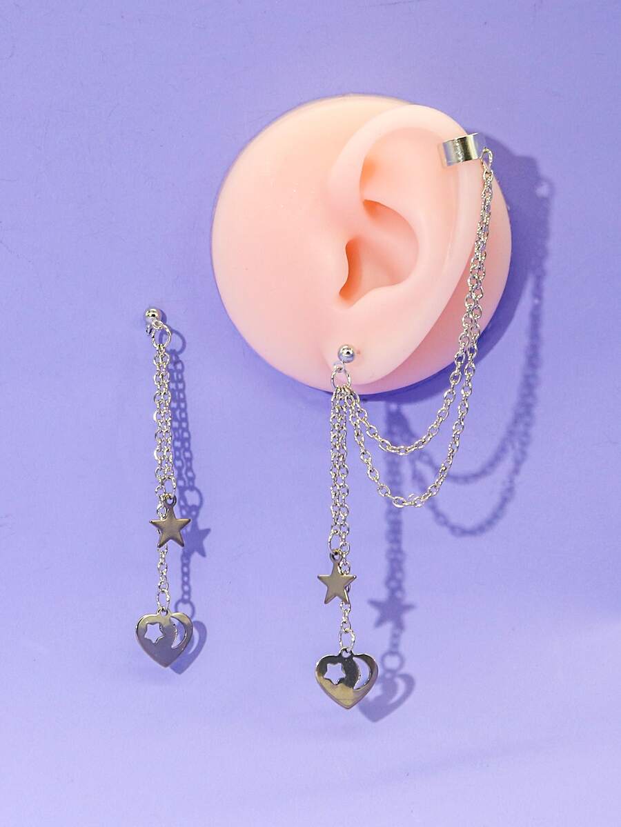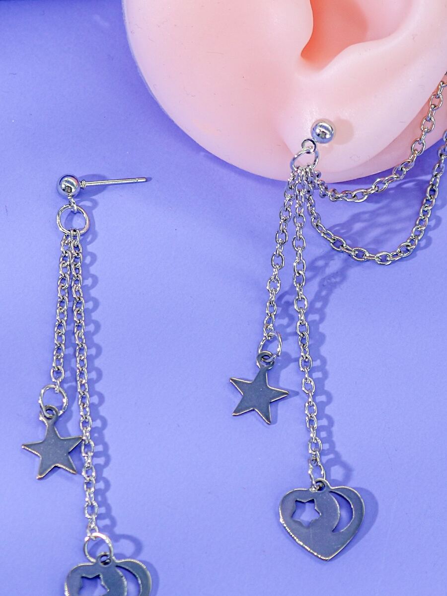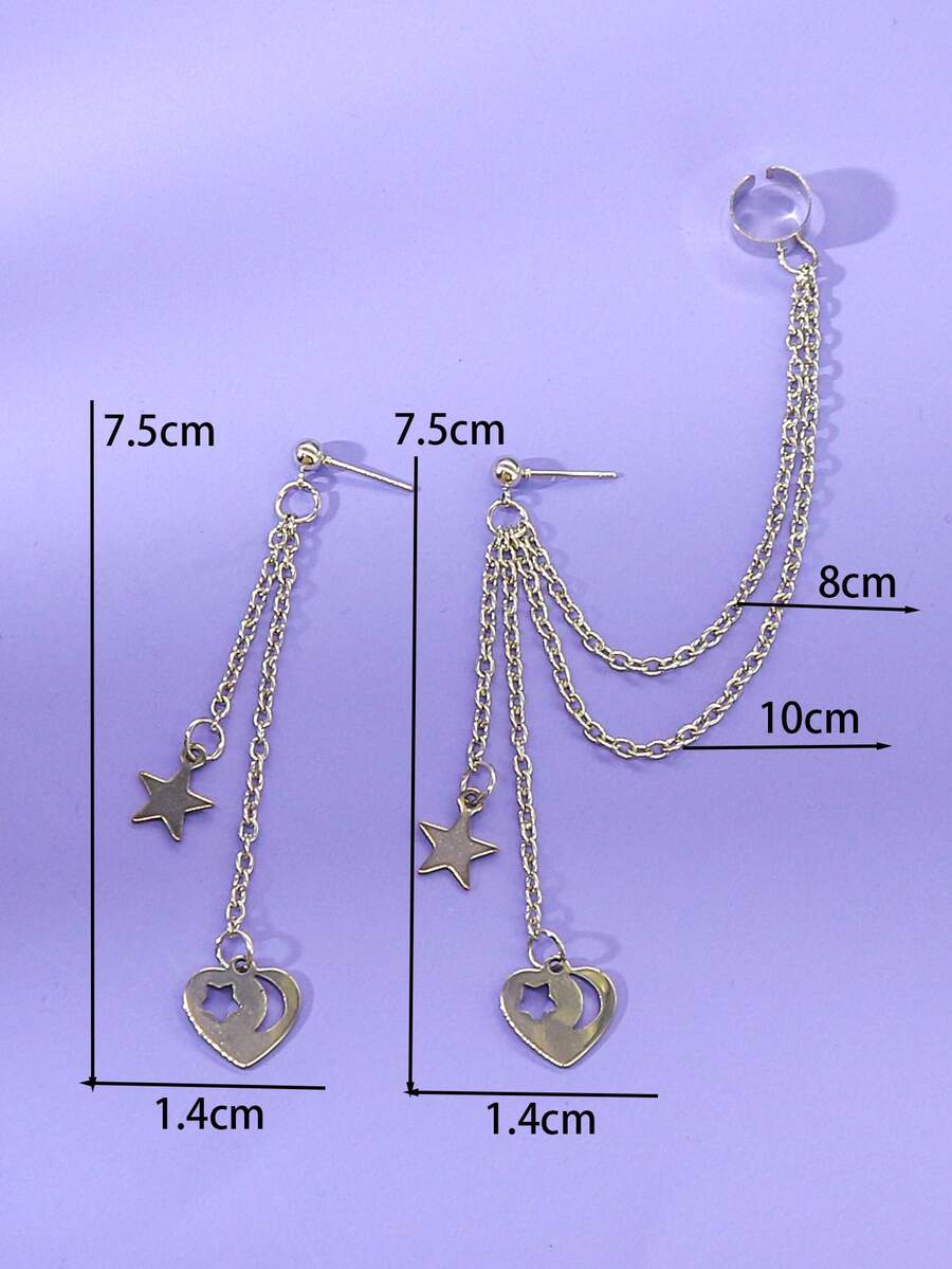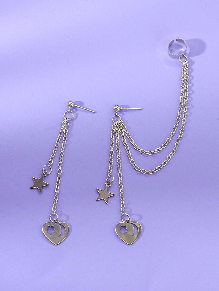أقراط متدلية نجمة و زخرفة قلب غير متماثل
