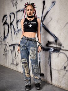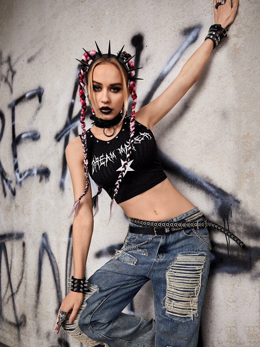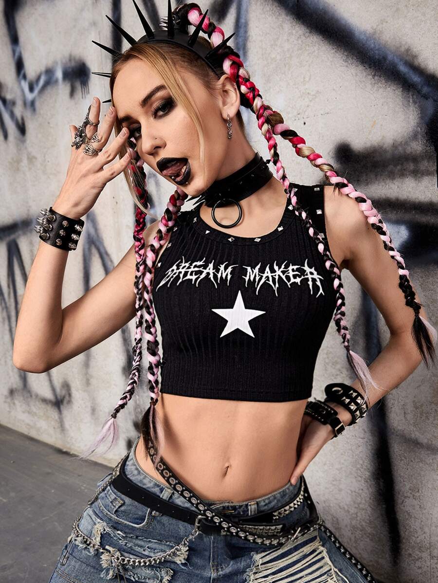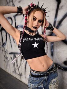 لباس علوي تانك قصير نجمة و بطباعة أحرف مرصعة