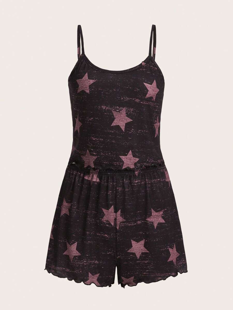 طقم بيجامة بطباعة قمر مقلم نمط نبات الخس