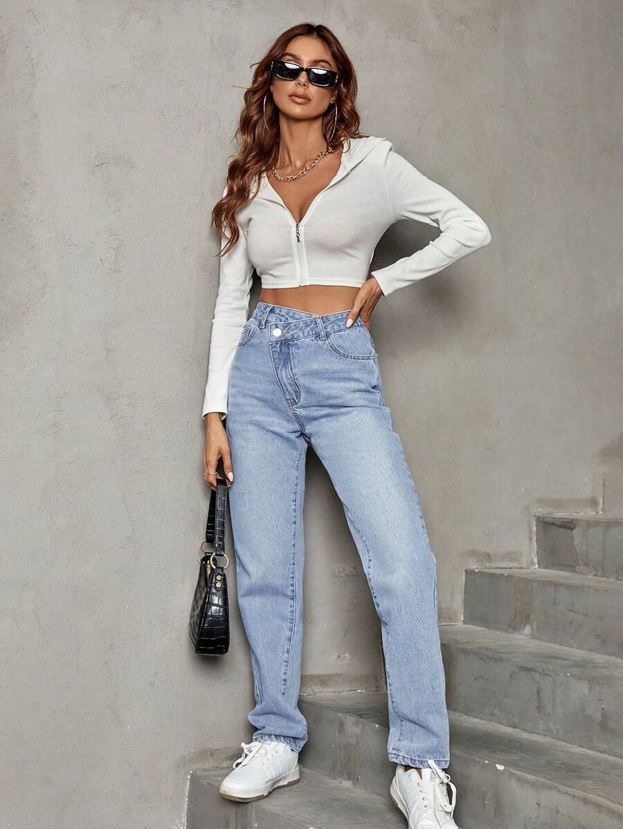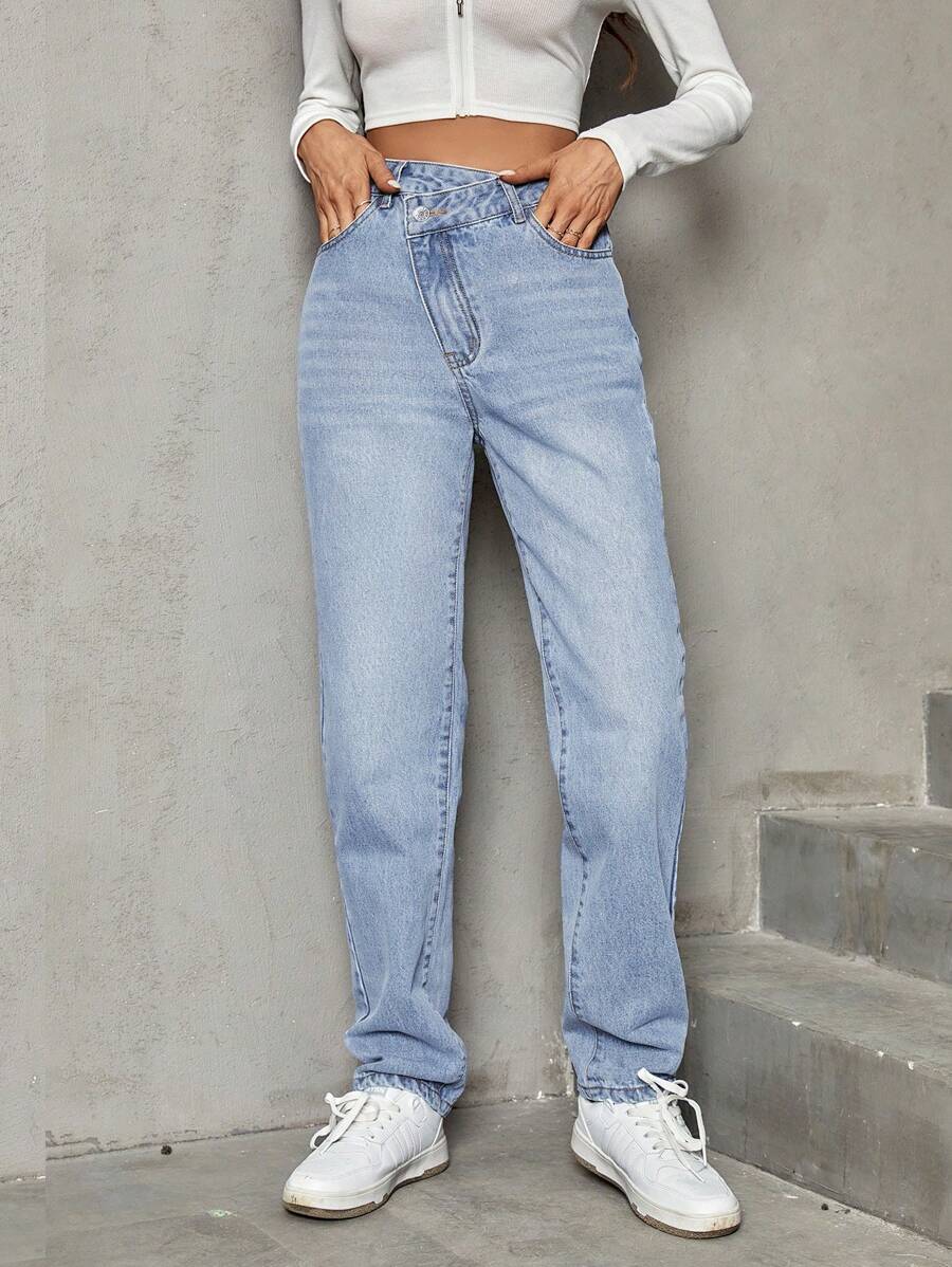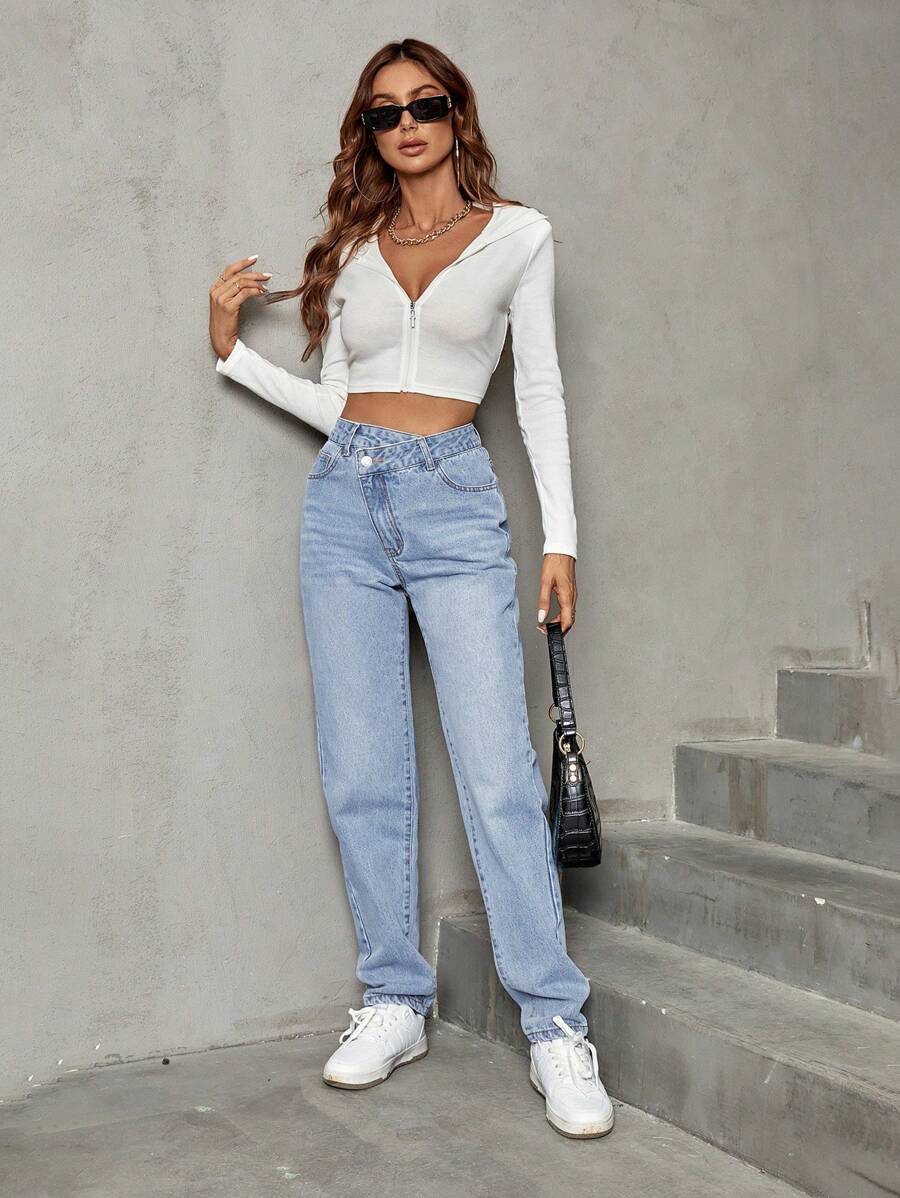 جينز بساق مستقيم صعدت خصر