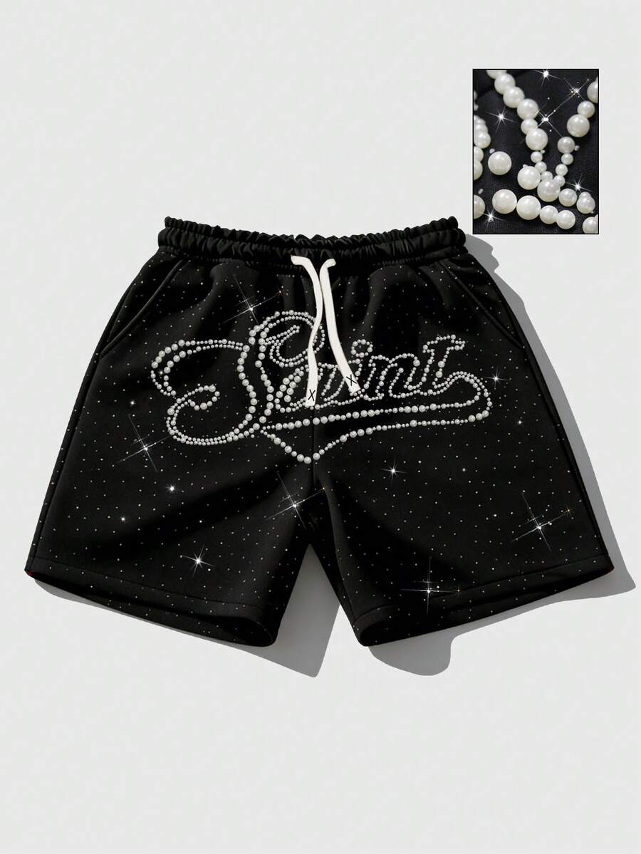 Street Life شورت كاجوال جديد لربيع/صيف 2026 بطراز Y2K، بخيط سحاب وخصر مزين بحروف وخرز اصطناعي