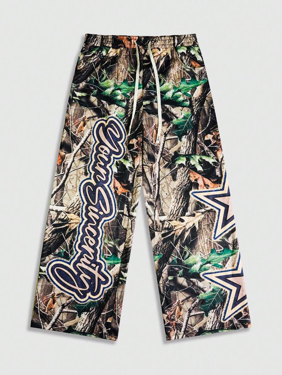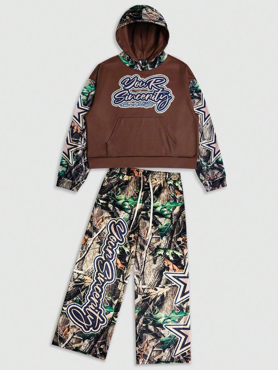 Street Life طقم هوديي ومرايل رياضية طباعة كامو للرجال 2 قطعة، كاجوال