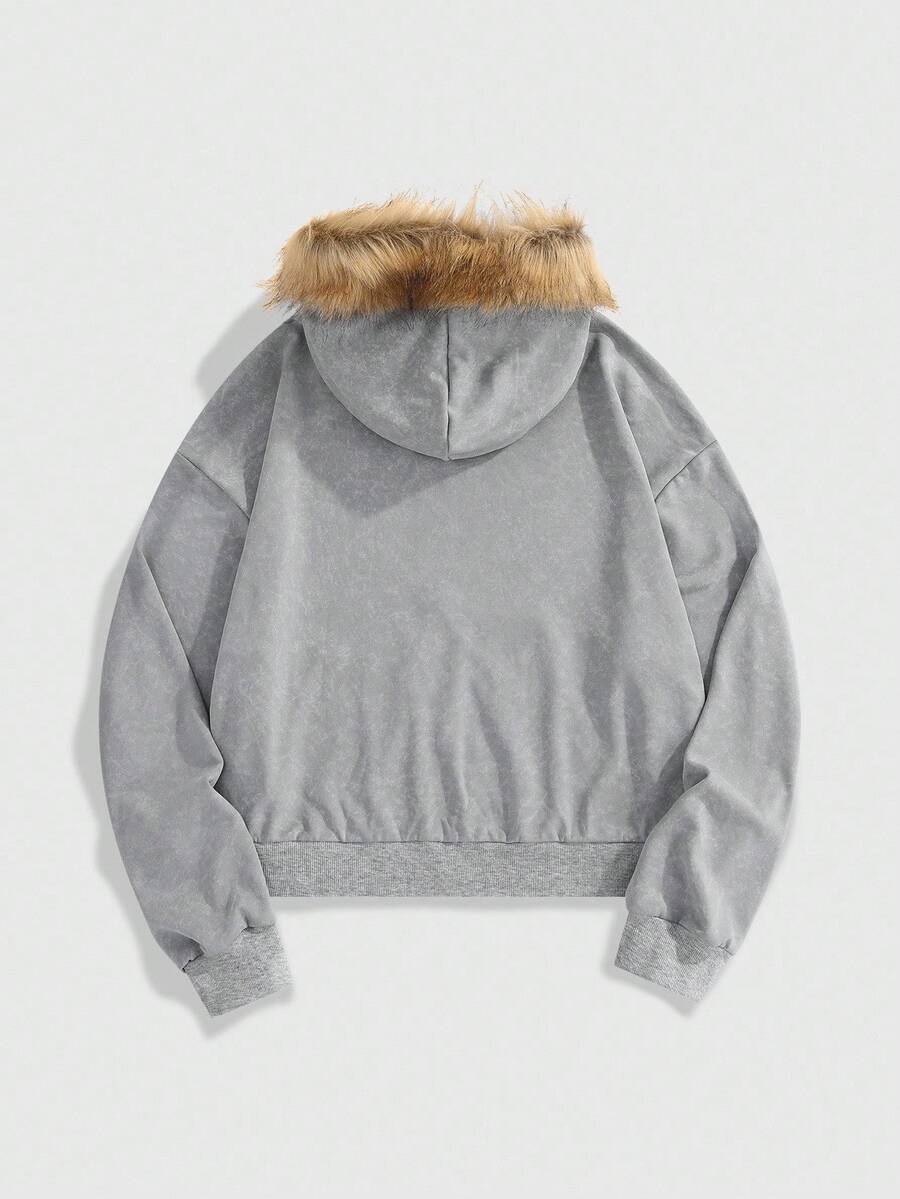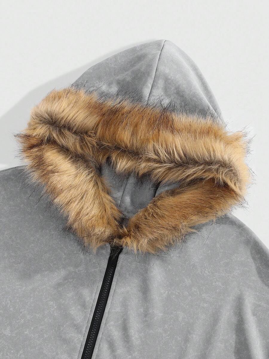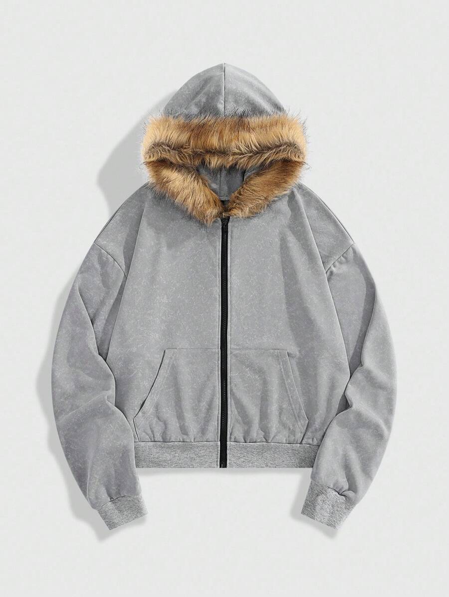 Street Life هوديز رجالي مزود بسحاب وياقة فرائية مريحة وعملية، للخريف والشتاء