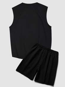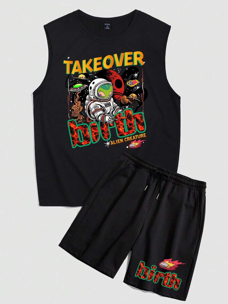 Street Life للشباب رائد فضاء بطباعة أحرف لباس علوي تانك و رباط خصر بنطلون قصير