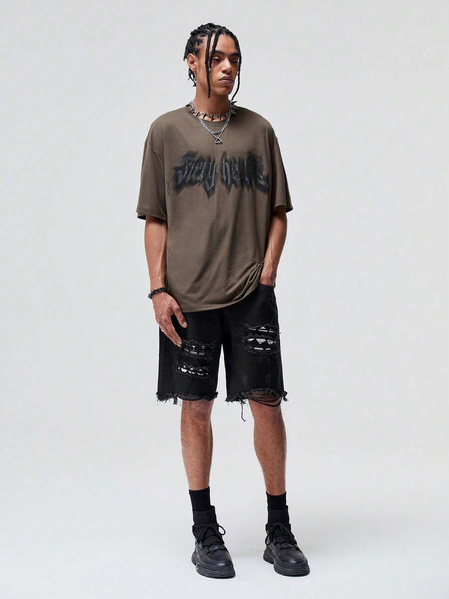 Street Life شورت دنيم قطن ممزق مهتري الحواف حافة خام للشباب