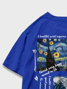 Street Life تي شيرت شعار & طباعة عباد الشمس للشباب