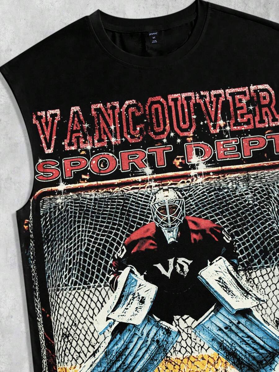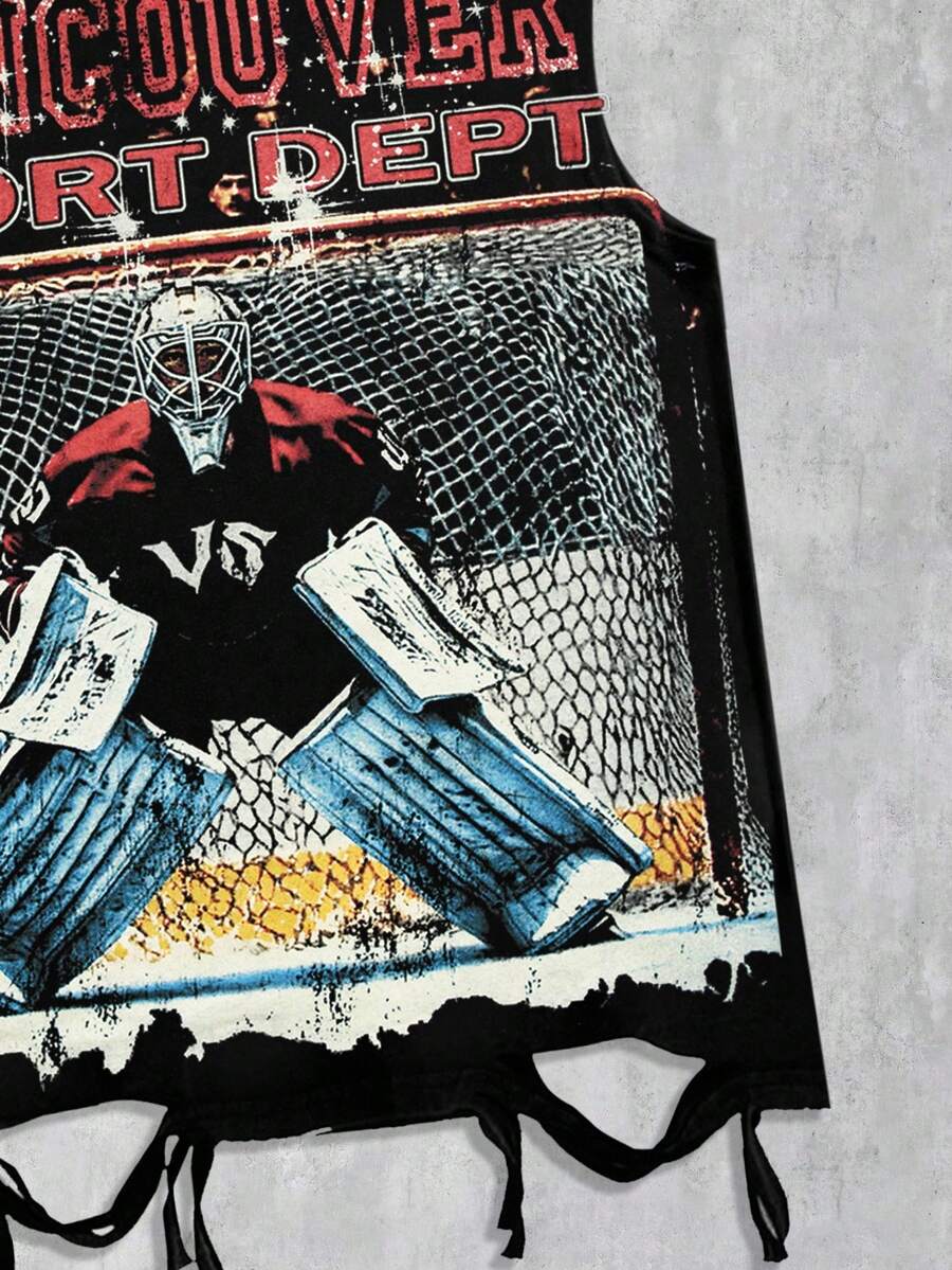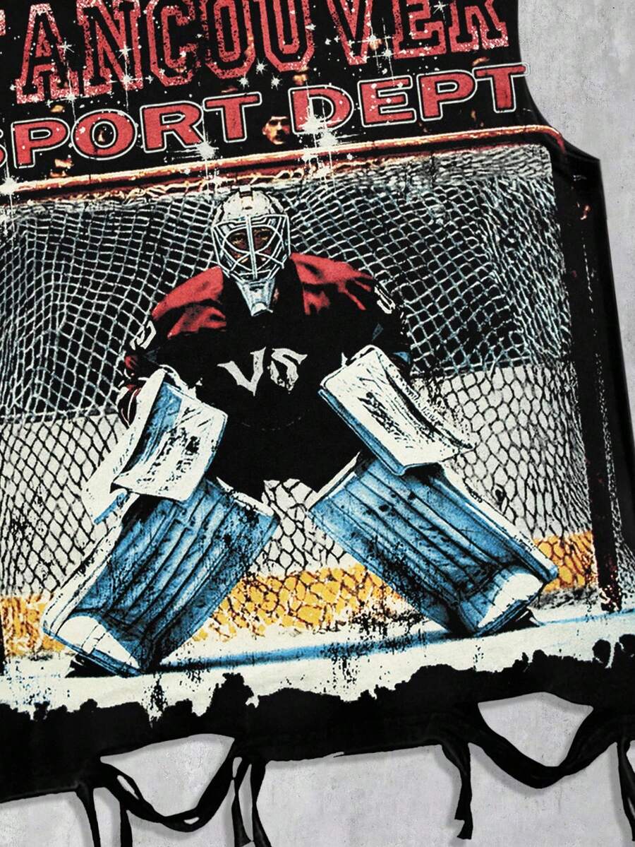 Street Life ملابس علوية رقبة طاقم بدون أكمام مطبوع برسم هوكي الجليد بتصميم ممزق، للرجال