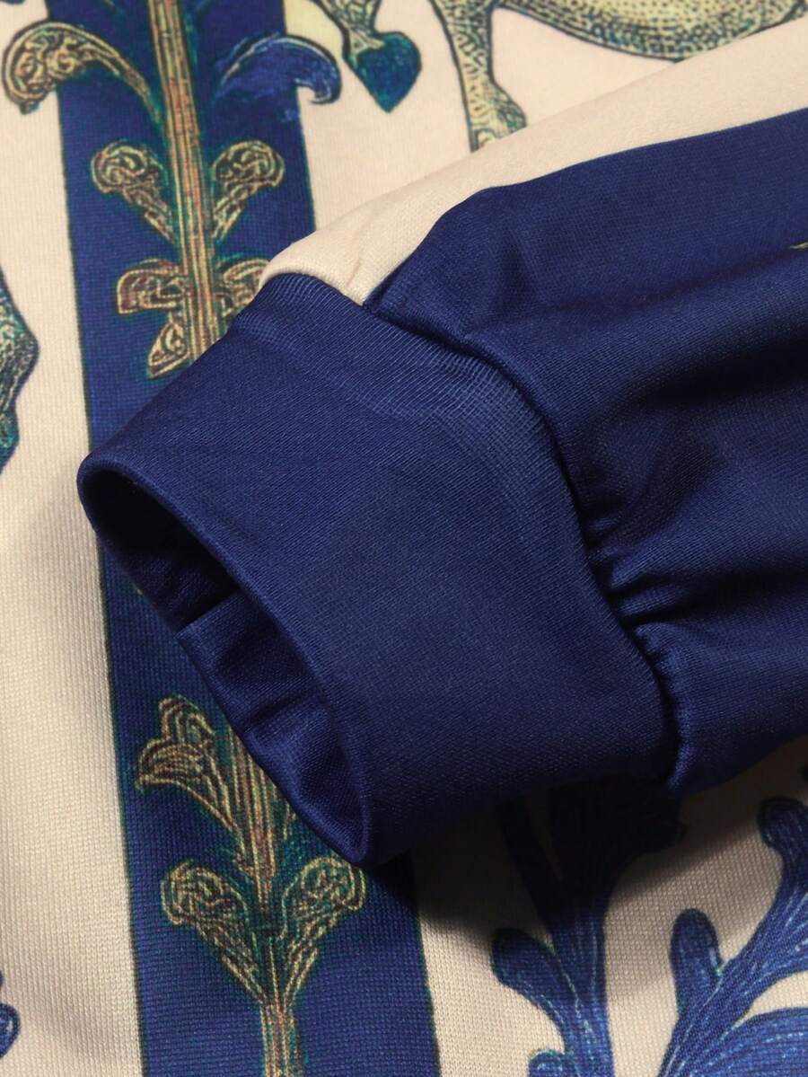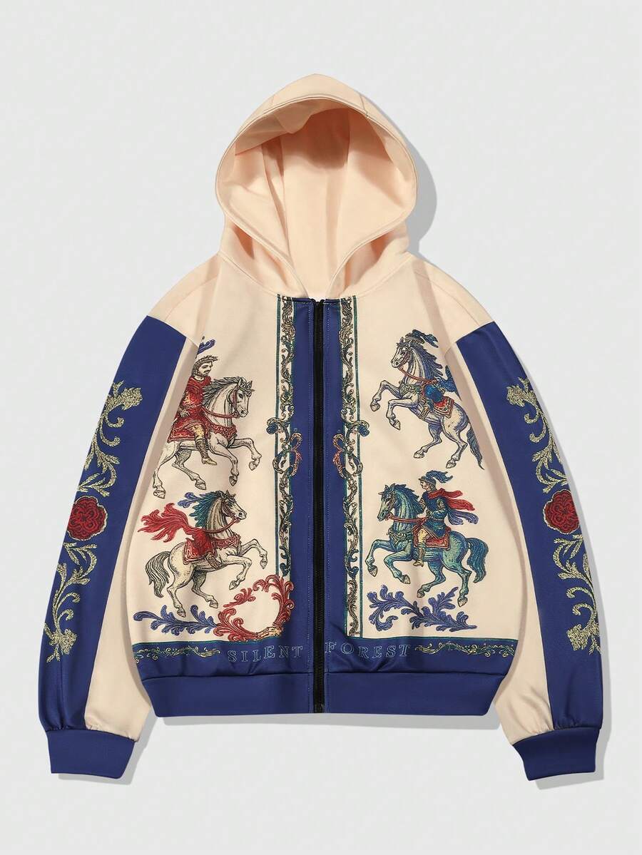Street Life بلوزة رياضية مزودة بسحاب وقبعة مطبوع عليها صورة فارس على حصان