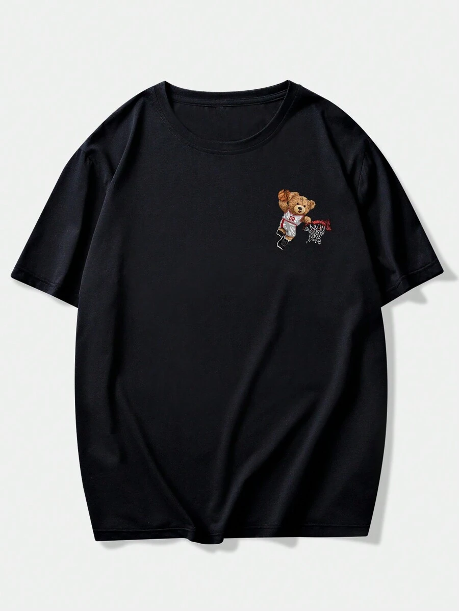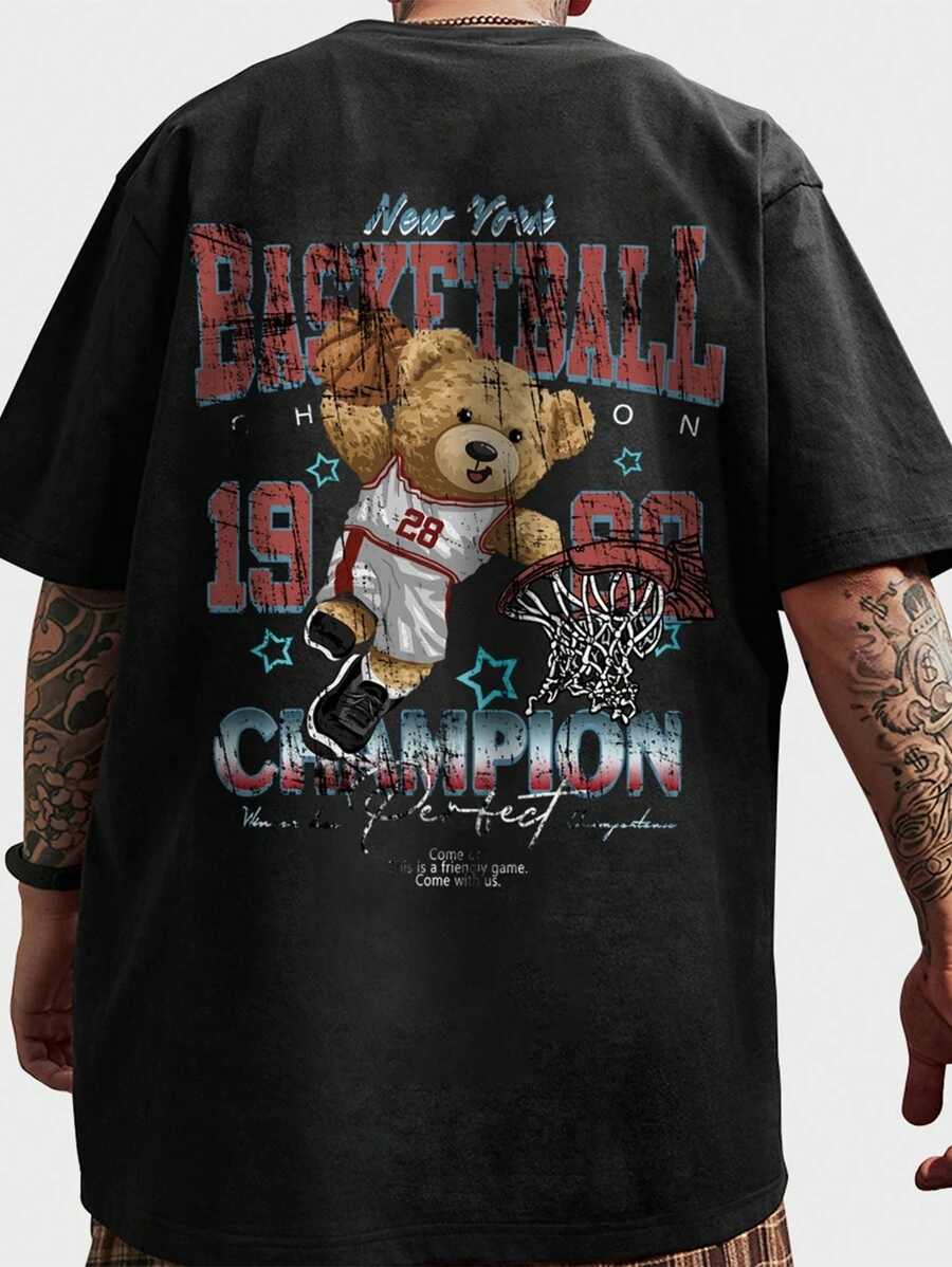 Street Life تي شيرت رسم لِدبّ و شعار للرجال، مدرسة
