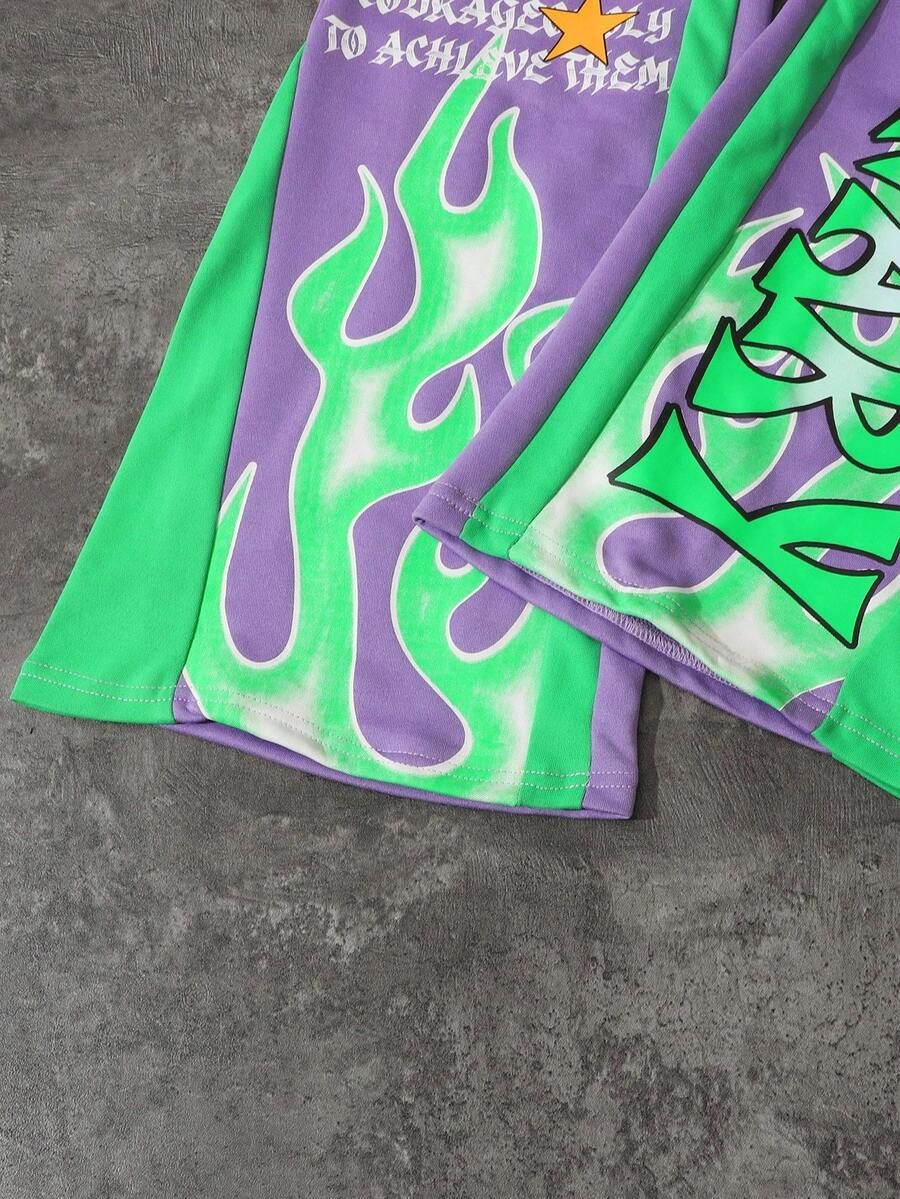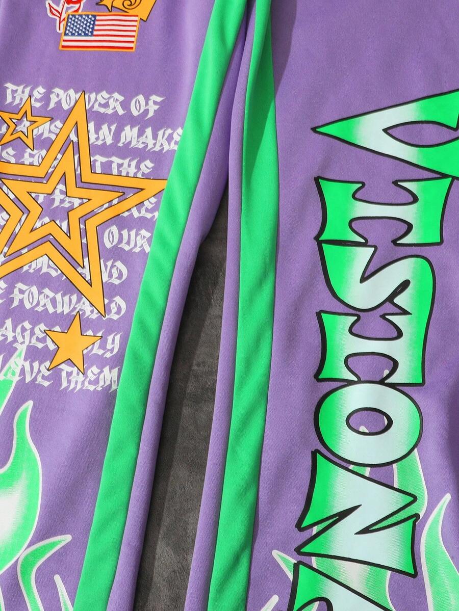 Street Life بنطلون رياضي واسع مطبوع بتصميم لاصق ذو طبقتين للخصر، خريف