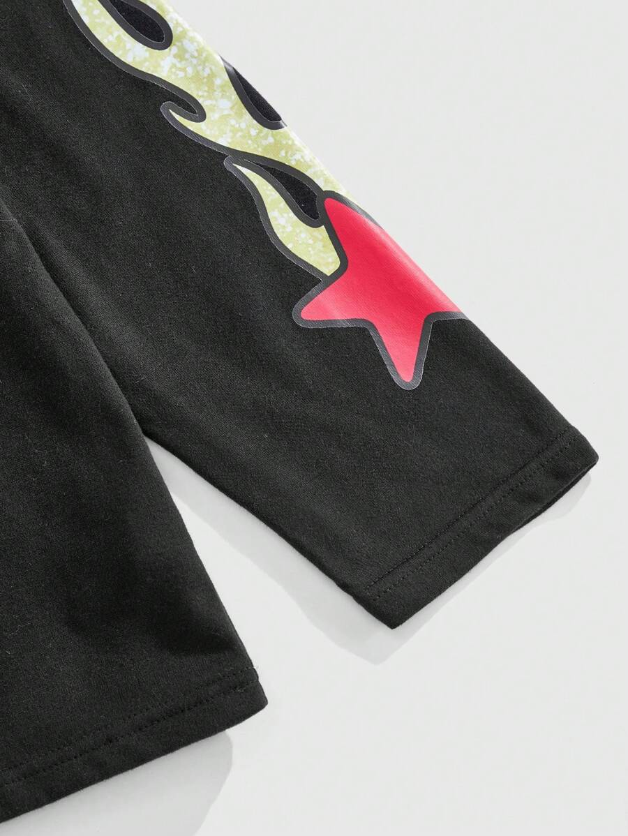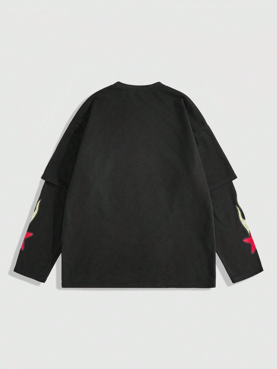 Street Life تي شيرت كاجوال للرجال ذو أكمام مزدوجة فضفاضة مطبوع عليه رسوم كرتونية للخريف