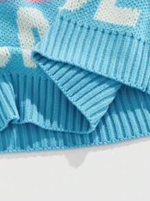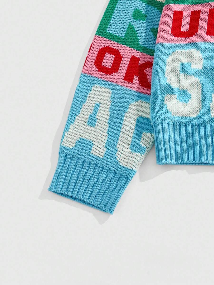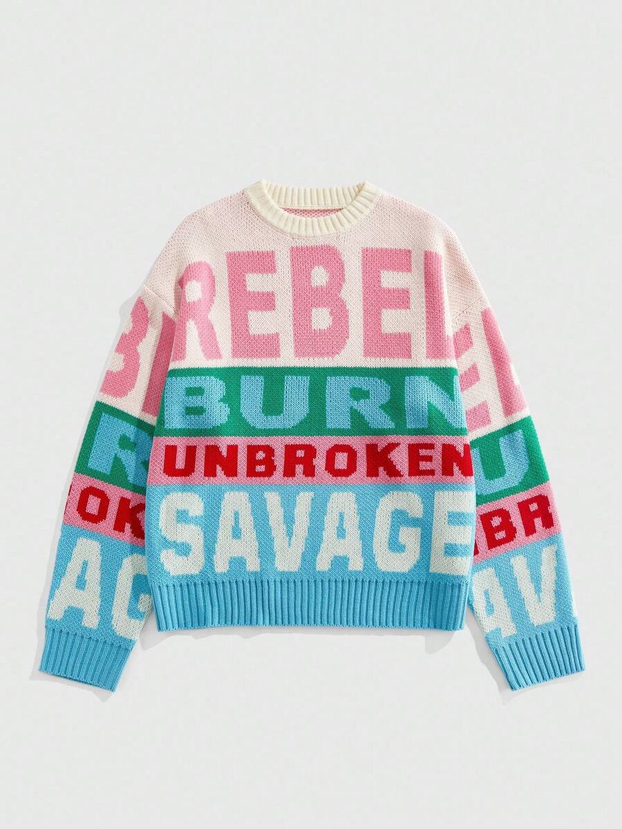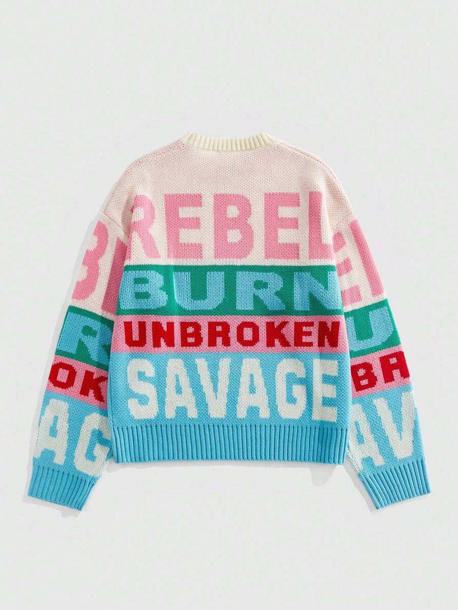 Street Life كنزة صوفية كاجوال فضفاضة بياقة طاقم وطبعة حرفية خريفية للرجال