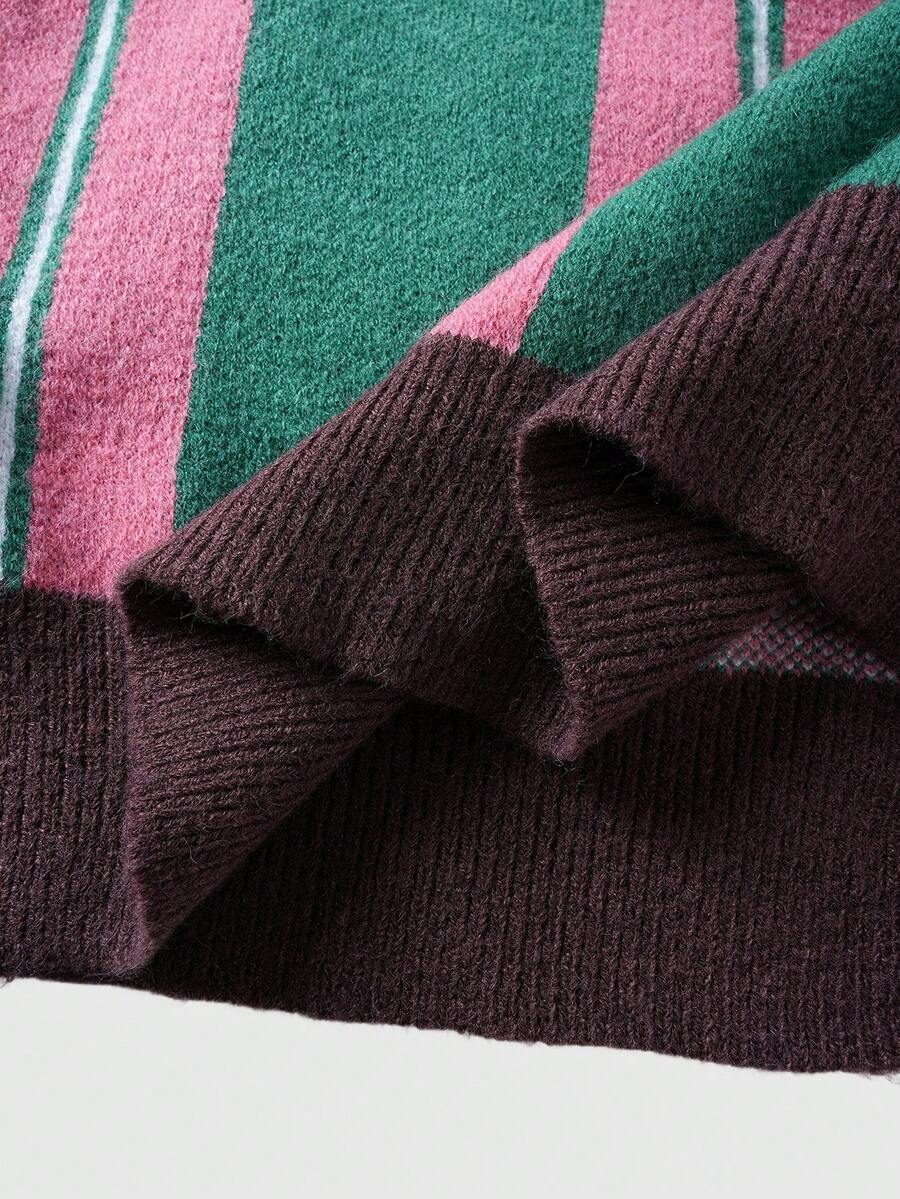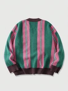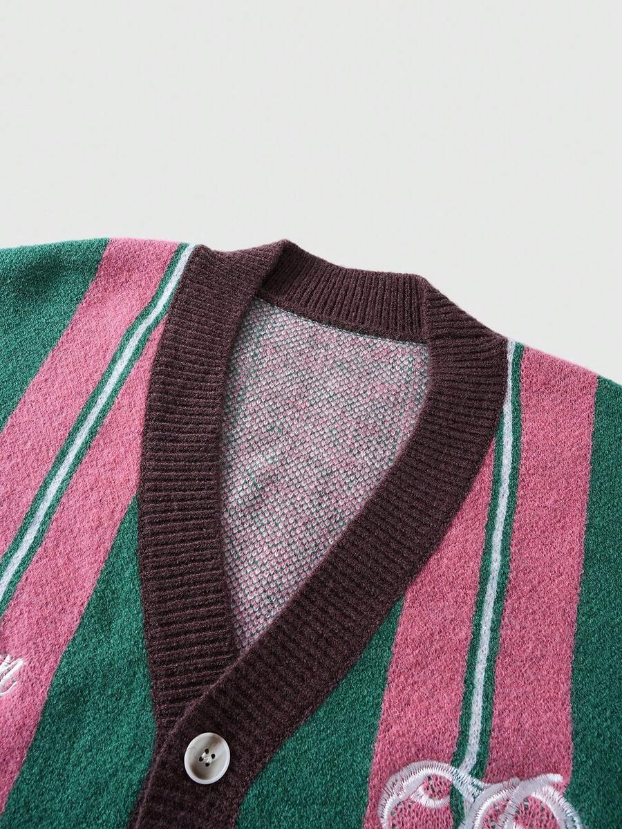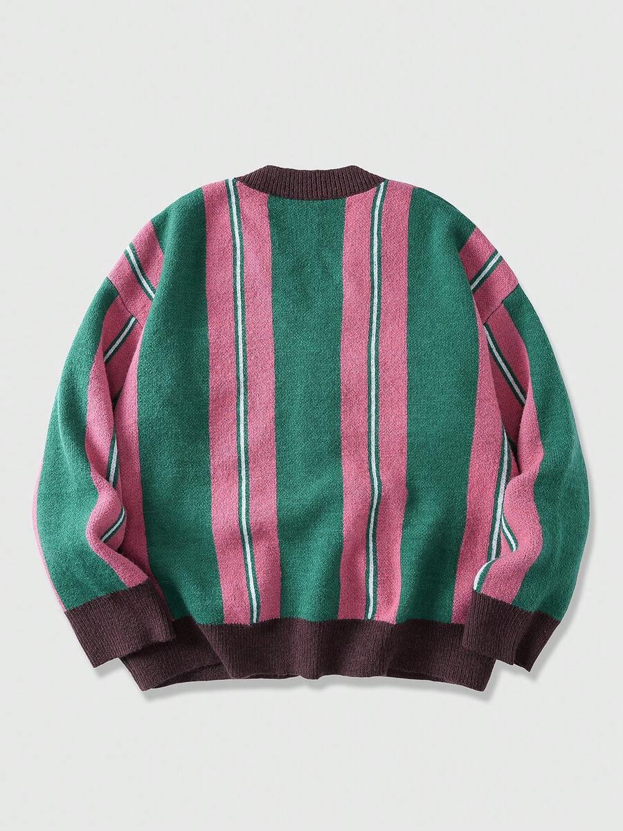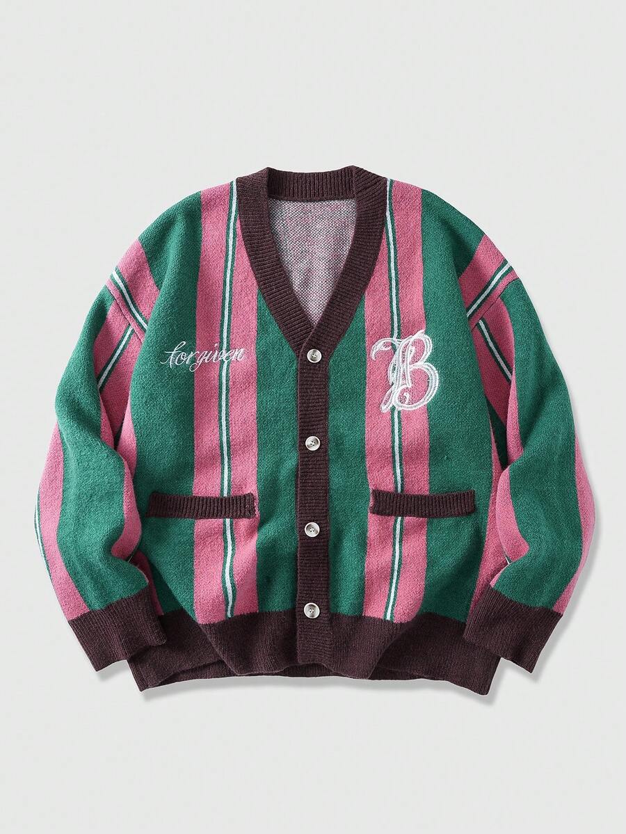 Street Life كارديجان كاجوال مطرز بحرف طويل الأكمام مخطط للرجال في فصل الخريف/الشتاء