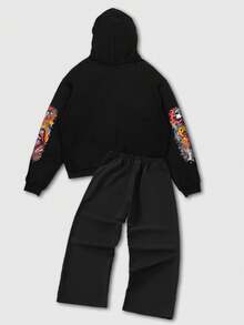 Street Life طقم هودي أسود للرجال مطبوع عليه رسم تمثال الحرية