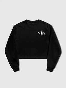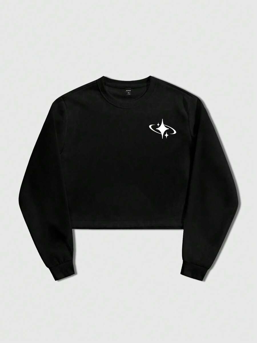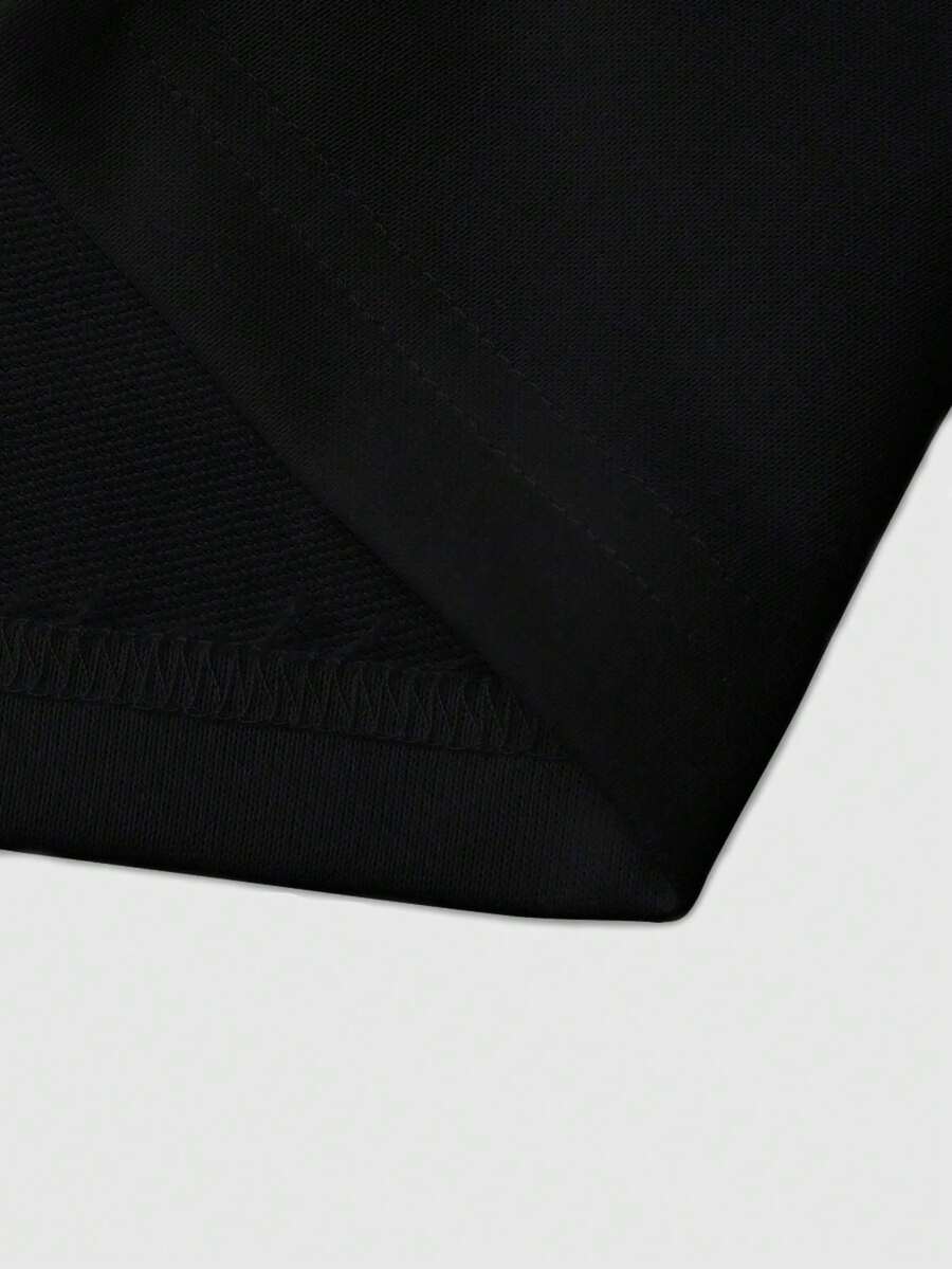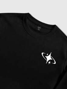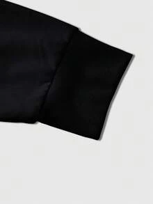 Street Life بلوزة رجالية قصيرة بياقة طاقم باللون الأسود مع رسم شعار صغير، خريف/شتاء
