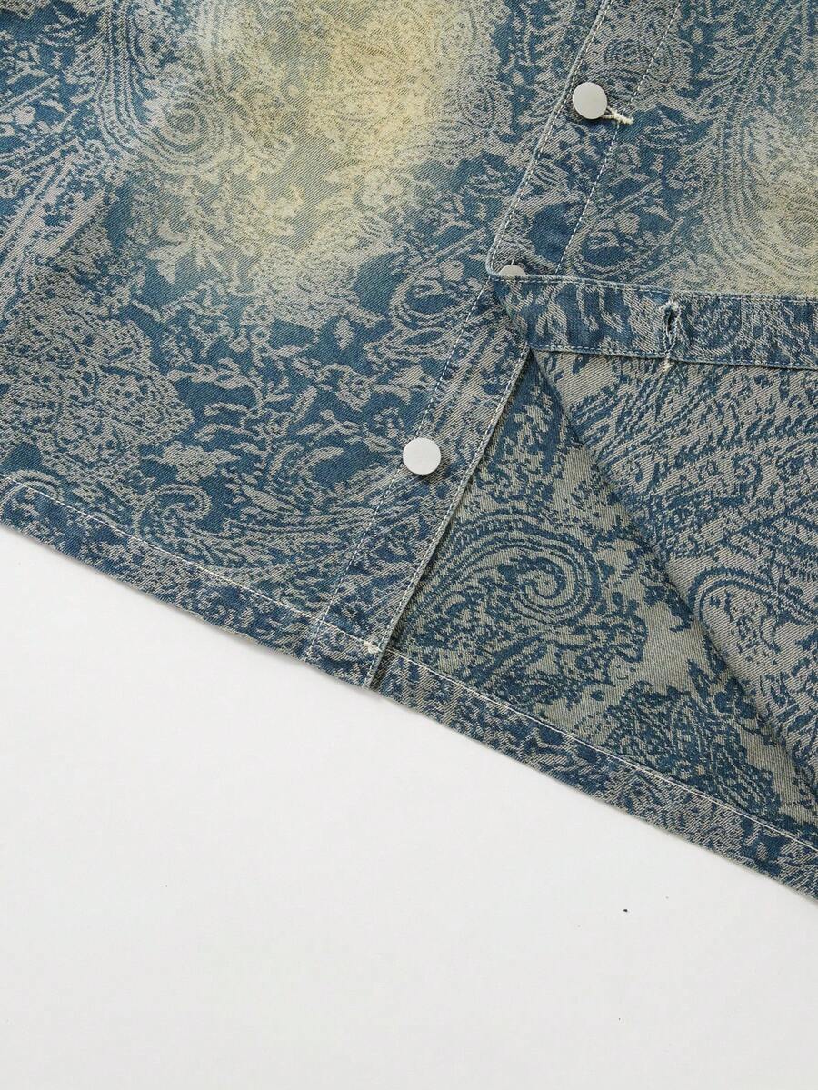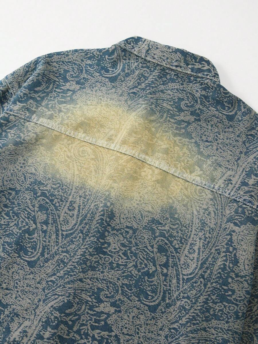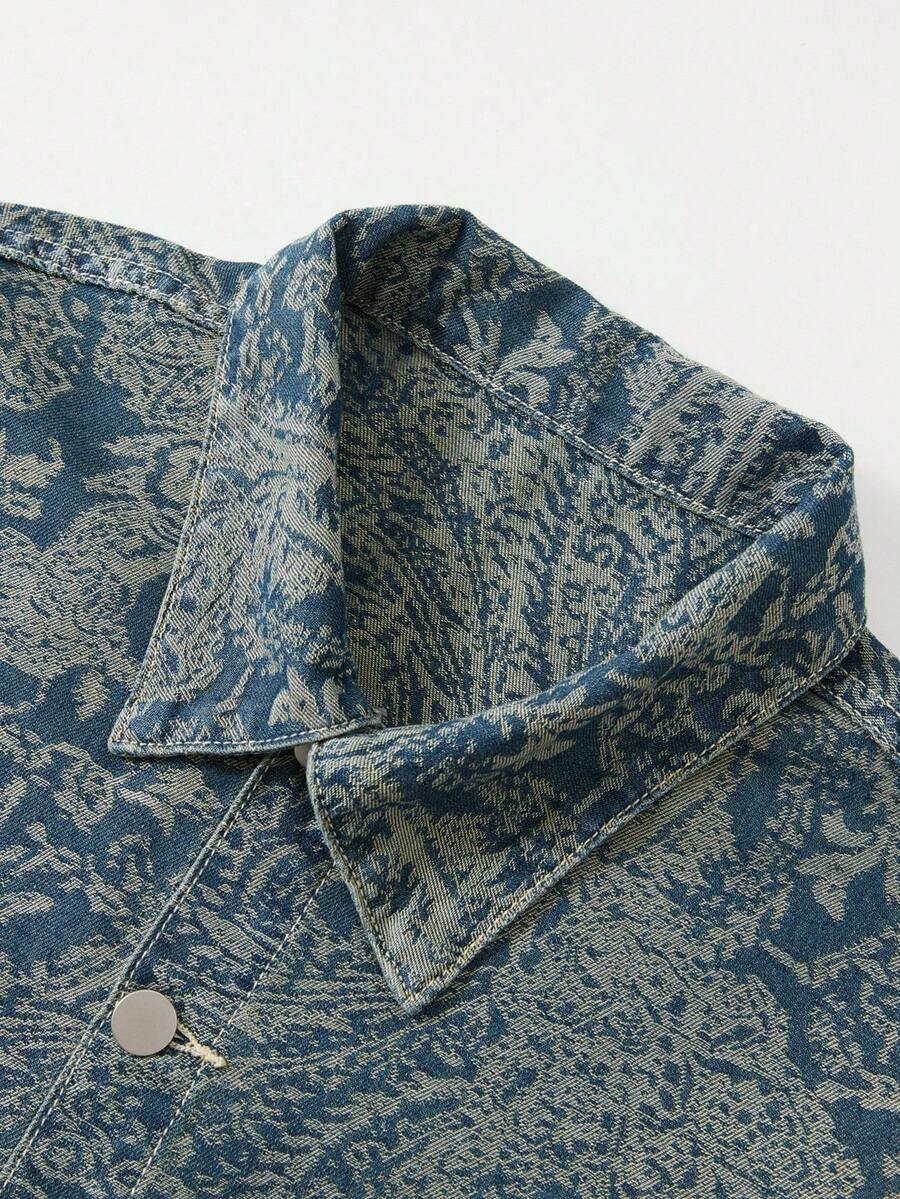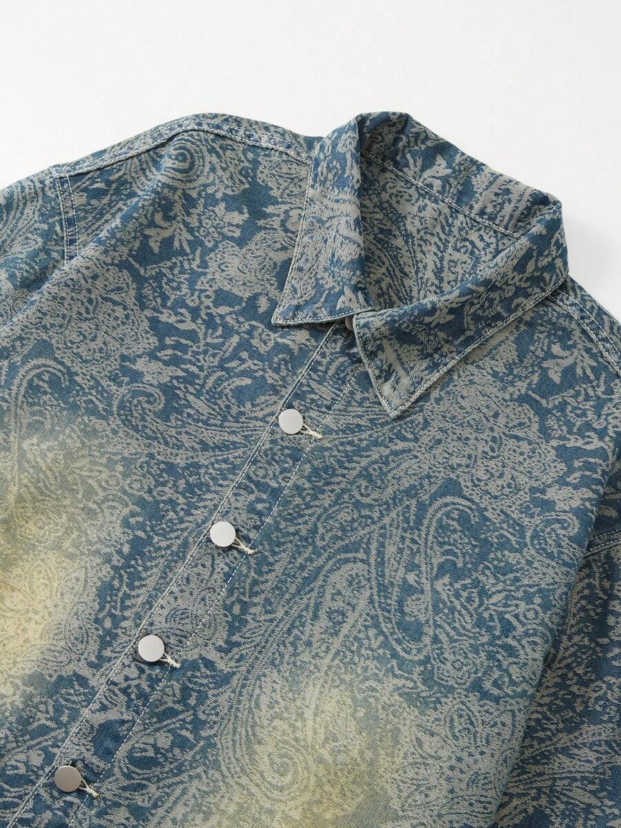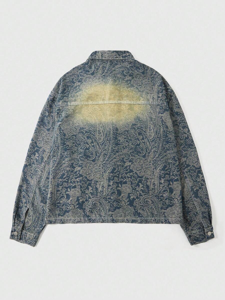 Street Life جاكيت جينز ذات أكمام طويلة وطبعة الكاجو للرجال، موسم الخريف
