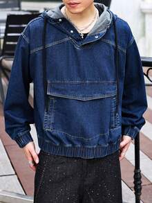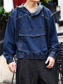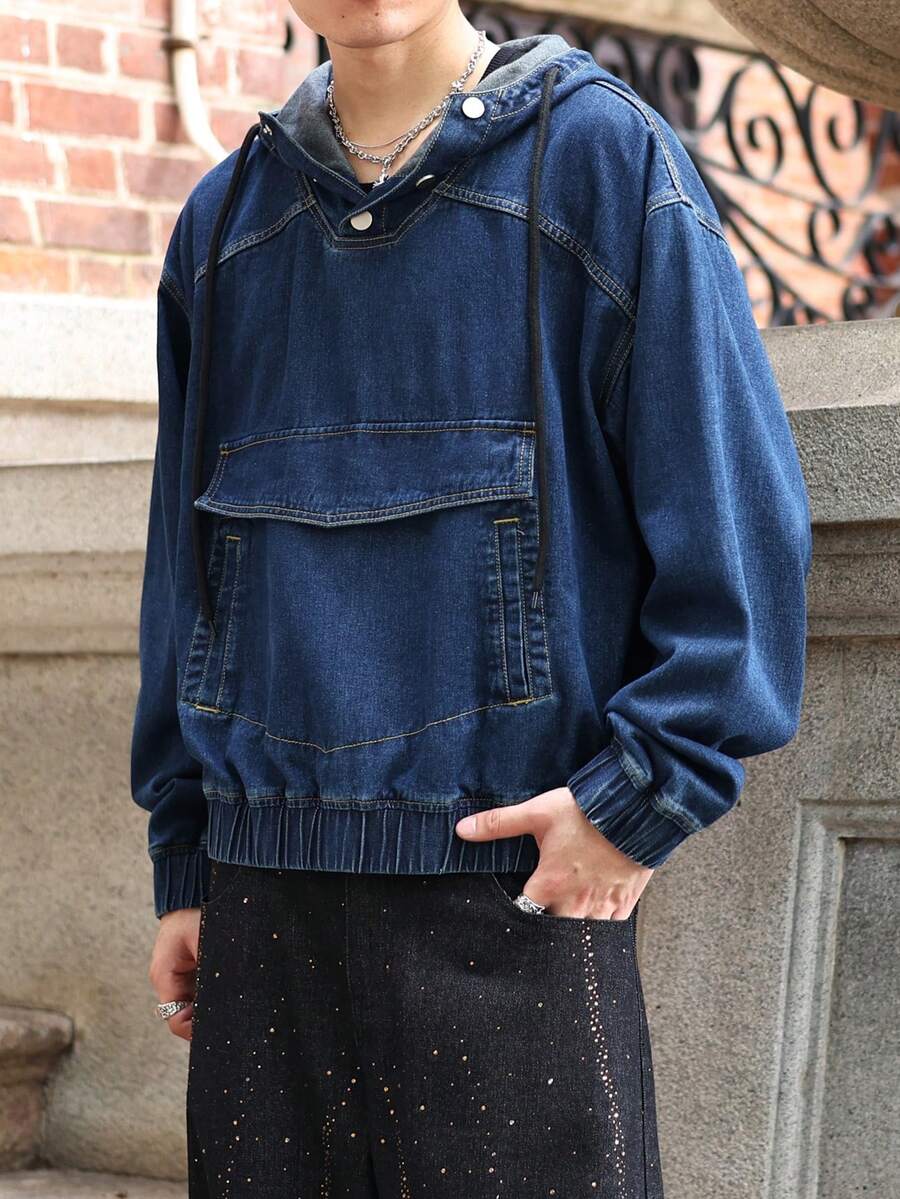Street Life جاكيت جينز كاجوال مع كابوشون وسحاب للرجال، خريفية