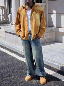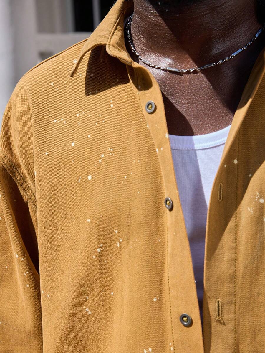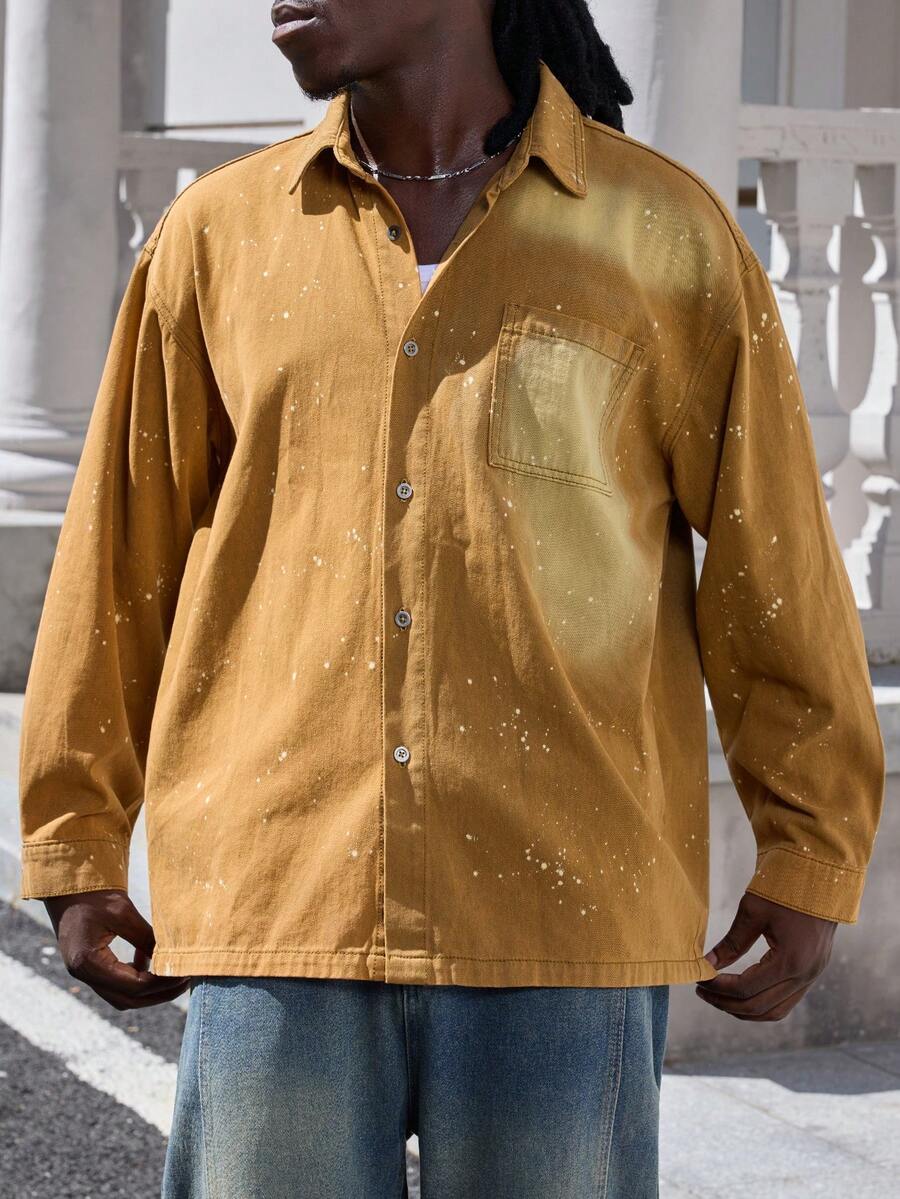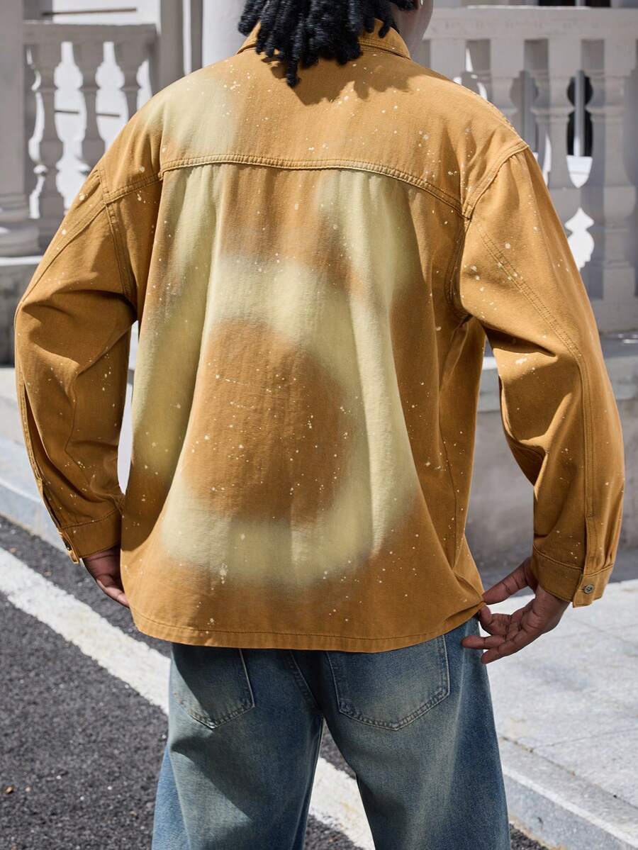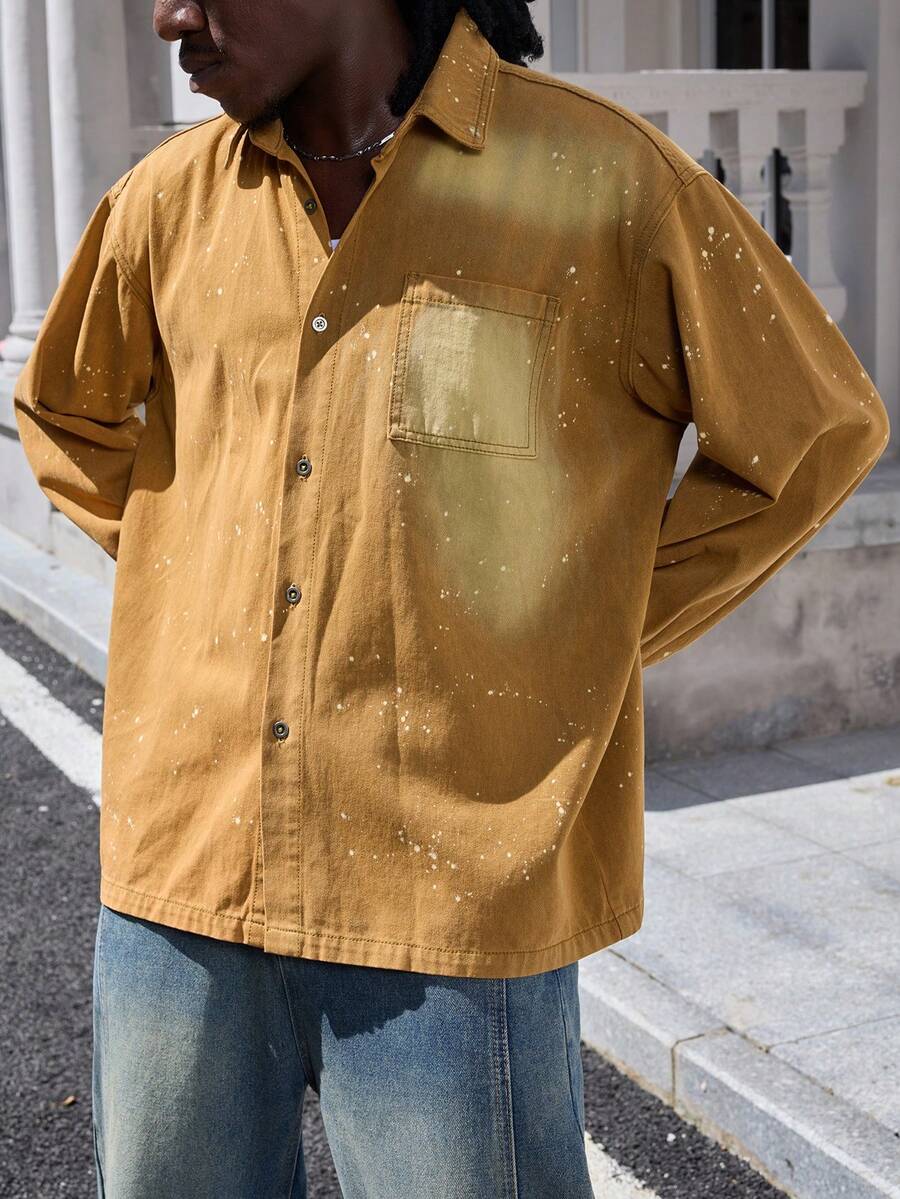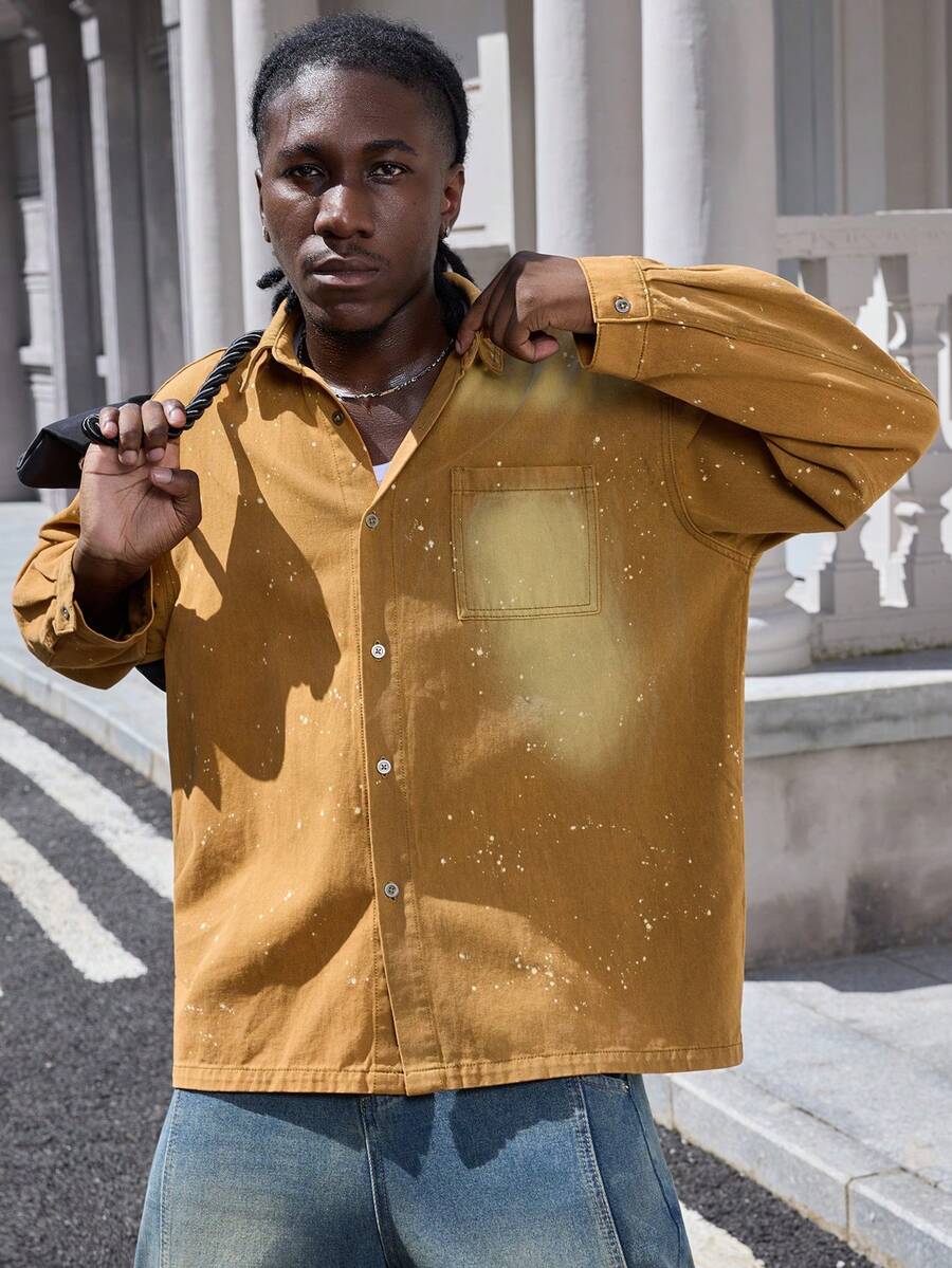 Street Life جاكيت جينز كاجوال للرجال بتصميم رقعي وجيب، كم طويل، مغسول، مناسبة للربيع والخريف