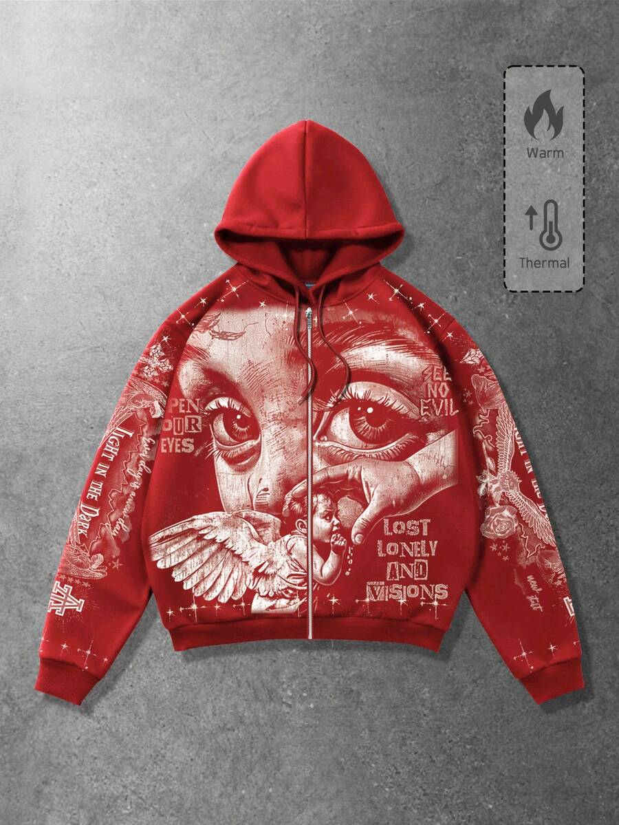Street Life بلوزة رياضية برباط وسحاب مطبوع عليها طباعة ملاك الشارع الكاجوال للرجال، دافئة للخريف/الشتاء