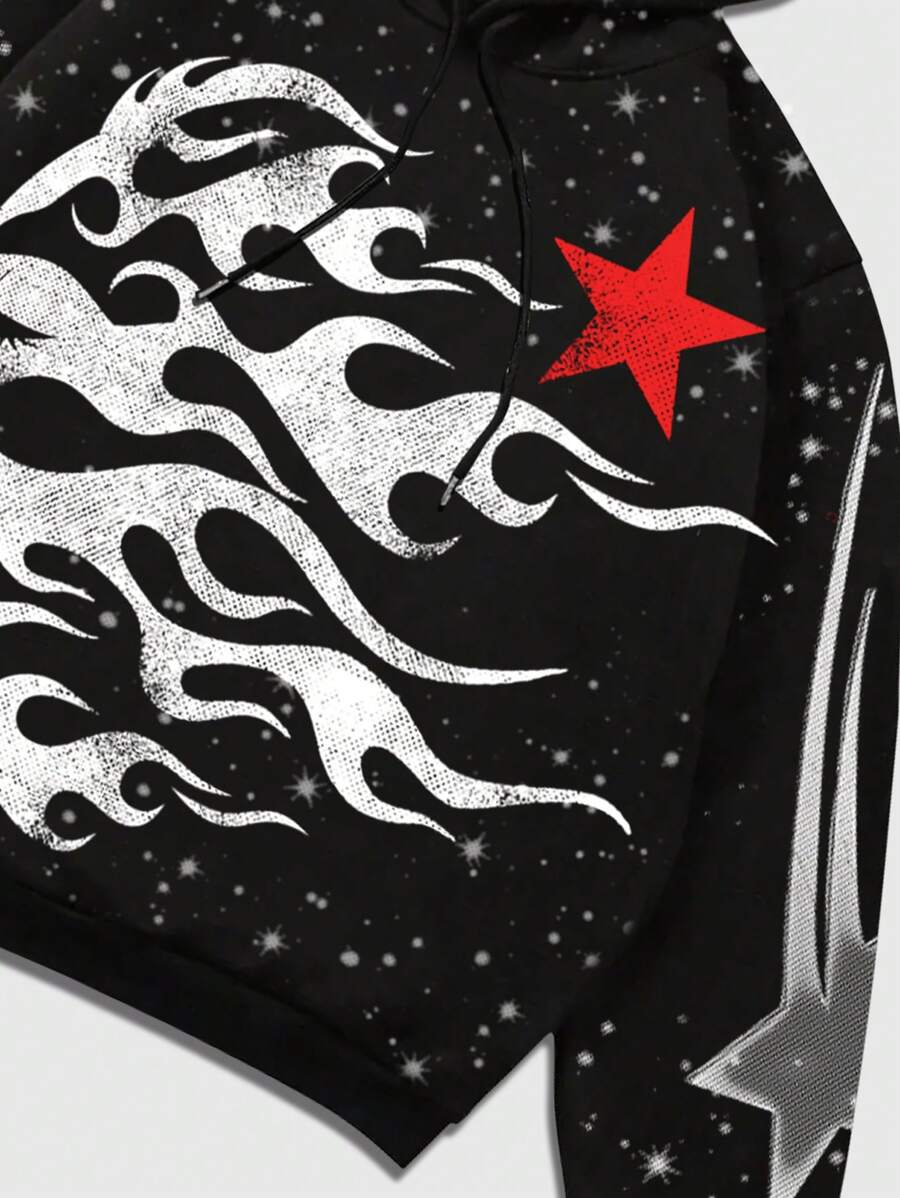 Street Life هودي كاجوال واسع للرجال بطبعة شخصية وحبل ربط، للخريف/الشتاء