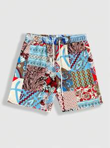 Street Life شورتات كاجوال للرجال مع طباعة البيزلي وخصر بسحاب، مدرسة