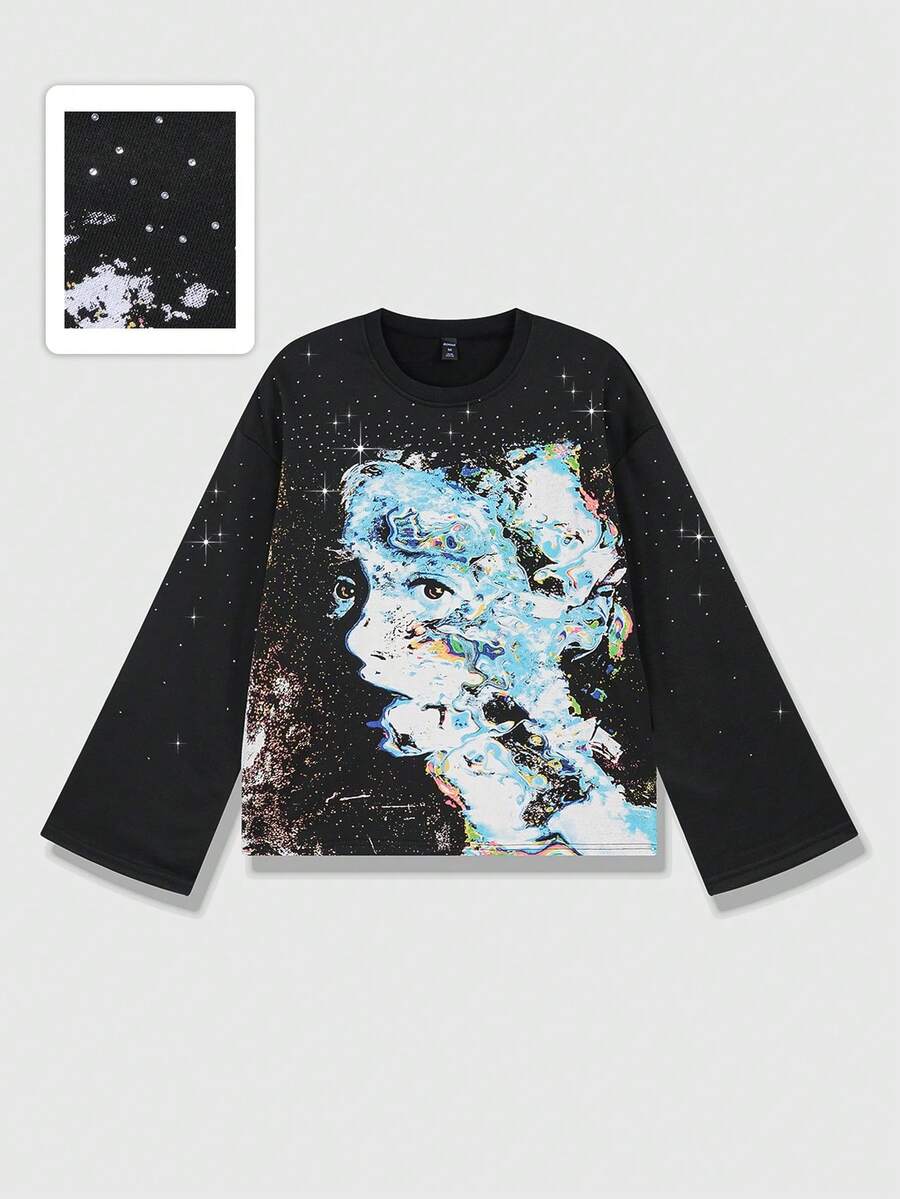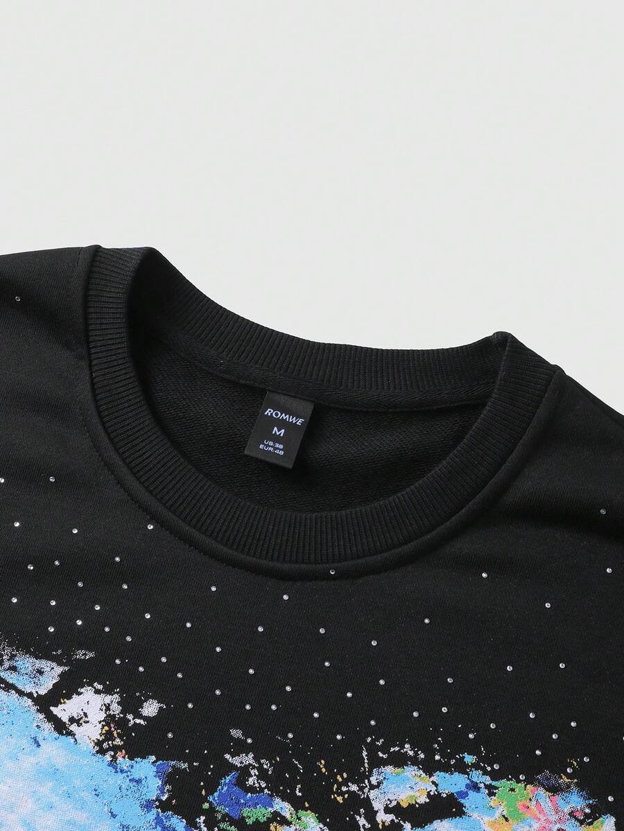 Street Life تي شيرت كاجوال للرجال مزين برسومات وحجارة الراين، خريفي