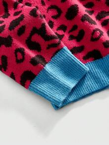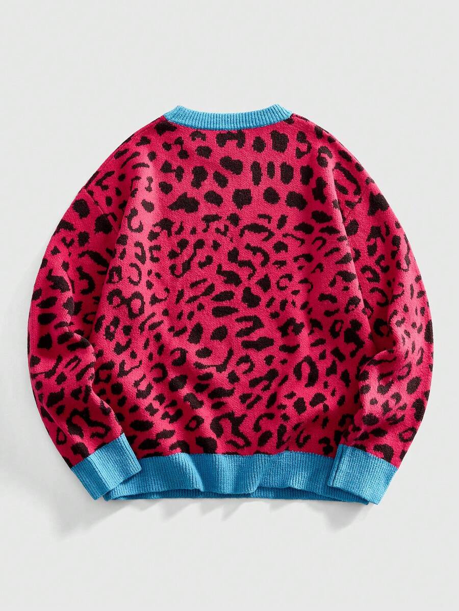 Street Life كنزة صوفية كاجوال للرجال من الجاكار المطبوع بنمط النمر، بياقة مستديرة وأكمام طويلة، مناسبة للخريف والشتاء