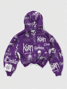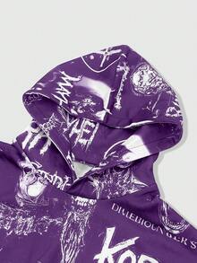 Street Life هودي كاجوال للرجال مطبوع عليه حرف وجمجمة، خريفي