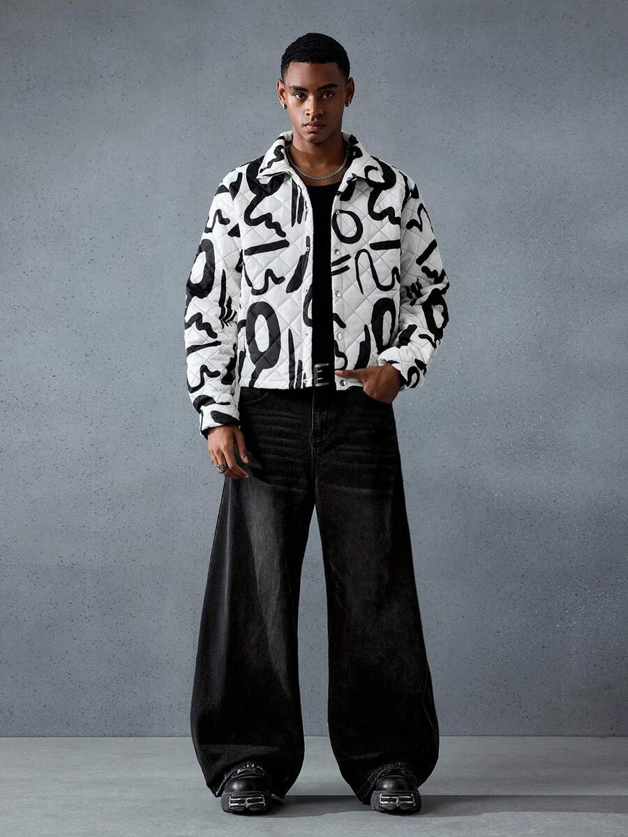 Street Life معطف قطني مبطن مبطن بنقشة مطبوعة، دافئ للشتاء