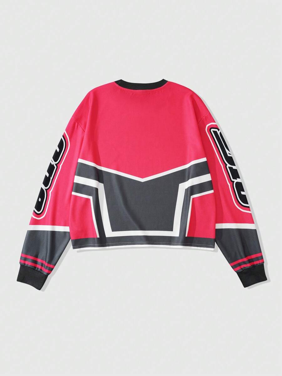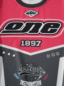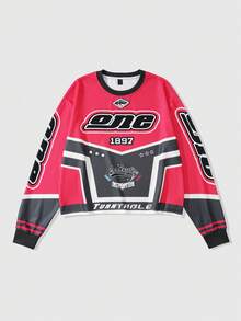 Street Life قميص كاجوال بياقة مستديرة وأكمام طويلة مطبوع عليه حرف، بطراز شارع رجعي