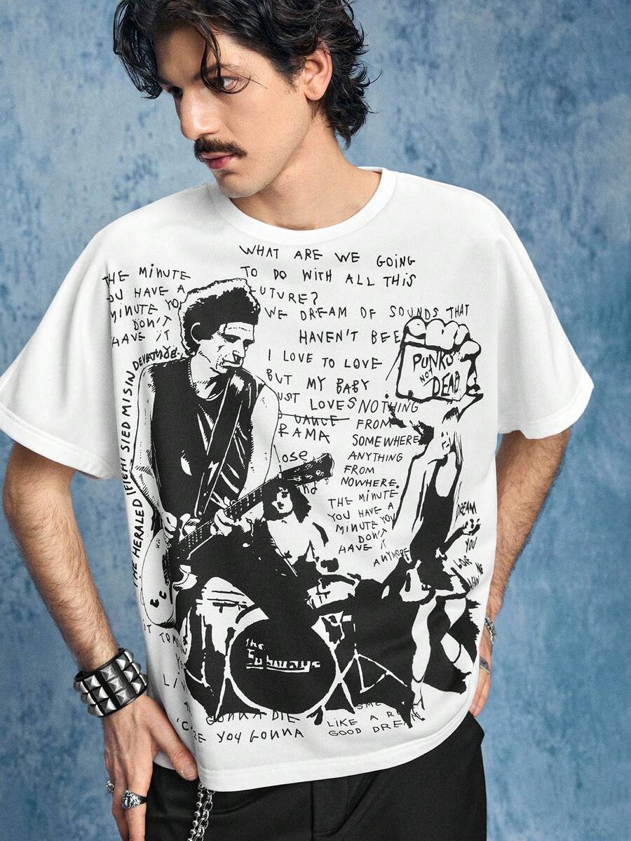 Street Life تي شيرت كاجوال للرجال بأكمام قصيرة مزخرف بتصميم يدوي