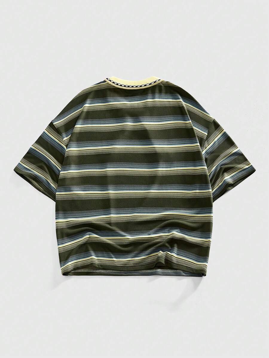 Street Life تي شيرت كاجوال مخطط بسحاب مزدوج للرجال