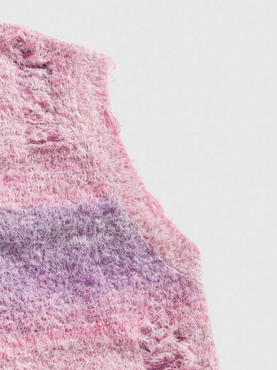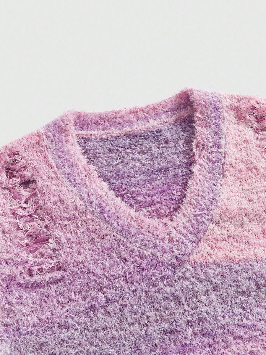 Street Life كنزة صوفية صدرية كاجوال بياقة على شكل حرف V مهترئة للرجال